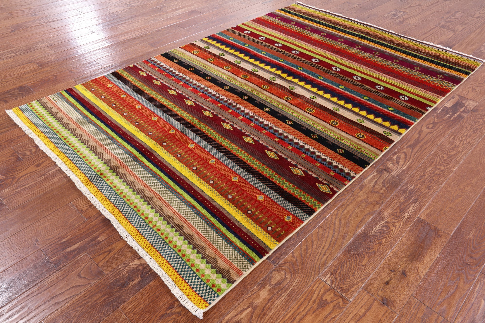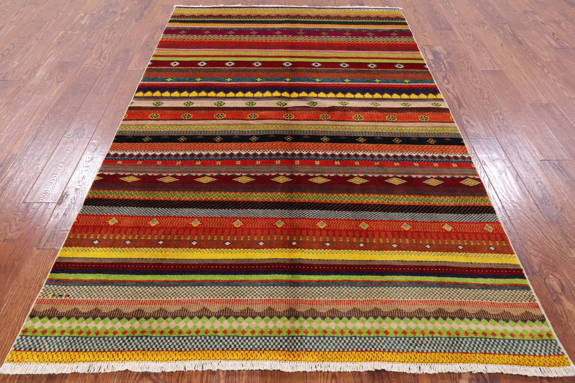 5' 0" X 7' 9" Handmade Gabbeh Loribaft Wool Rug - P7458 is backordered and will ship as soon as it is back in stock.