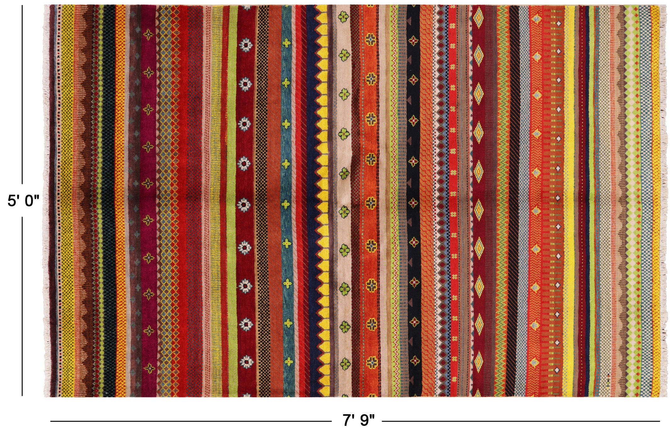5' 0" X 7' 9" Handmade Gabbeh Loribaft Wool Rug - P7458