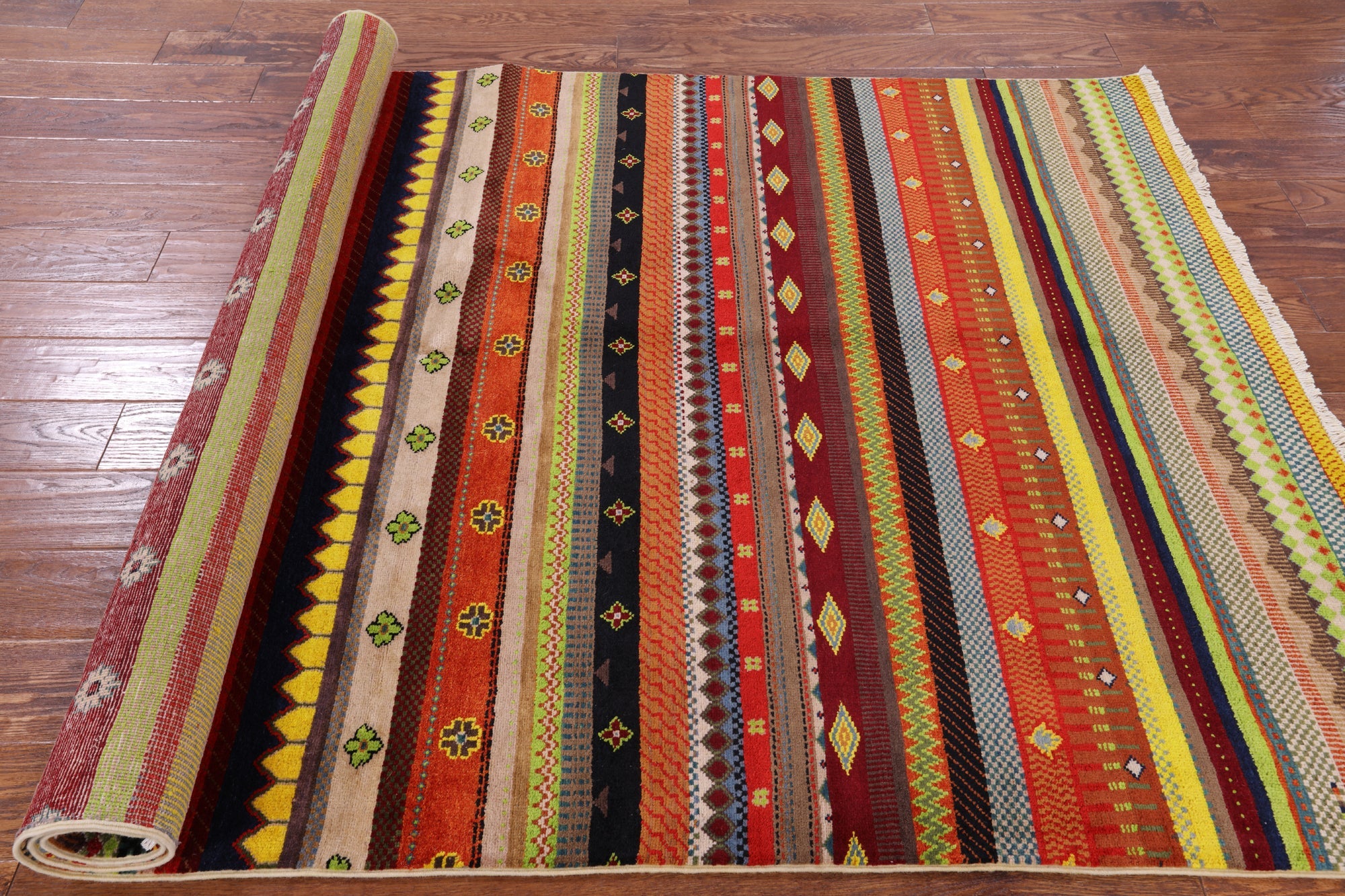 Gabbeh rugs are hand knotted to reflect tribal and other patterns such as solids, and nomadic designs. The simplistic "child-like" bold designs of Gabbeh rugs is what makes them perfectly suitable for any decor. Gabbeh rugs are made from high-quality wool and have a high density of knots. Gabbeh rugs are hand-knotted and eco-friendly, because only natural dyes are used in their production.