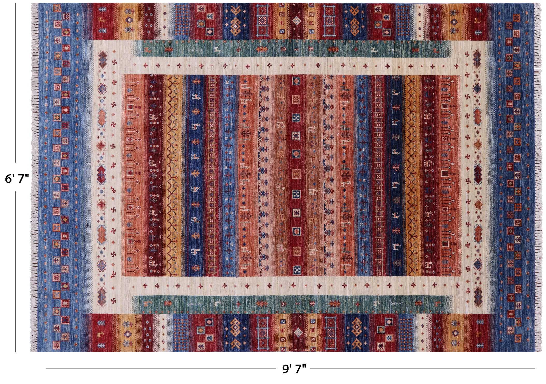 Handmade Persian Gabbeh Tribal Wool Rug 6' 7" X 9' 7" - Q10447