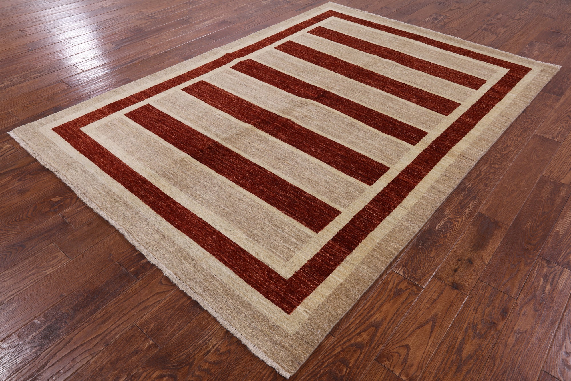 Gabbeh rugs are hand-spun wool in both the pile and the foundation, as well as all natural dyes. Simple, colorful geometric patterns, abstract scenery, child-like representations of people and animals, different colors, reds, blue, greens ,yellow, purple. Modern technology has improved the dye process to allow a wider range of colors as well as more stable and easier to care for colors.