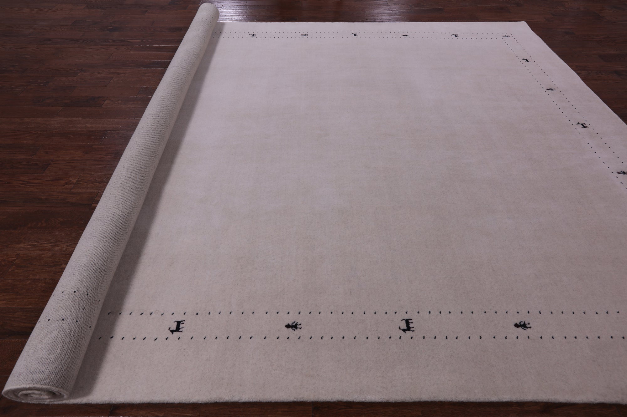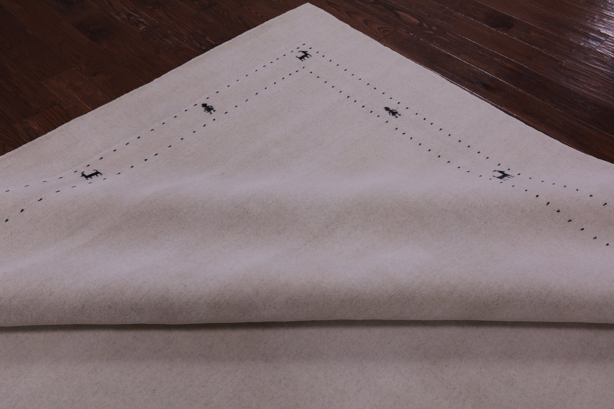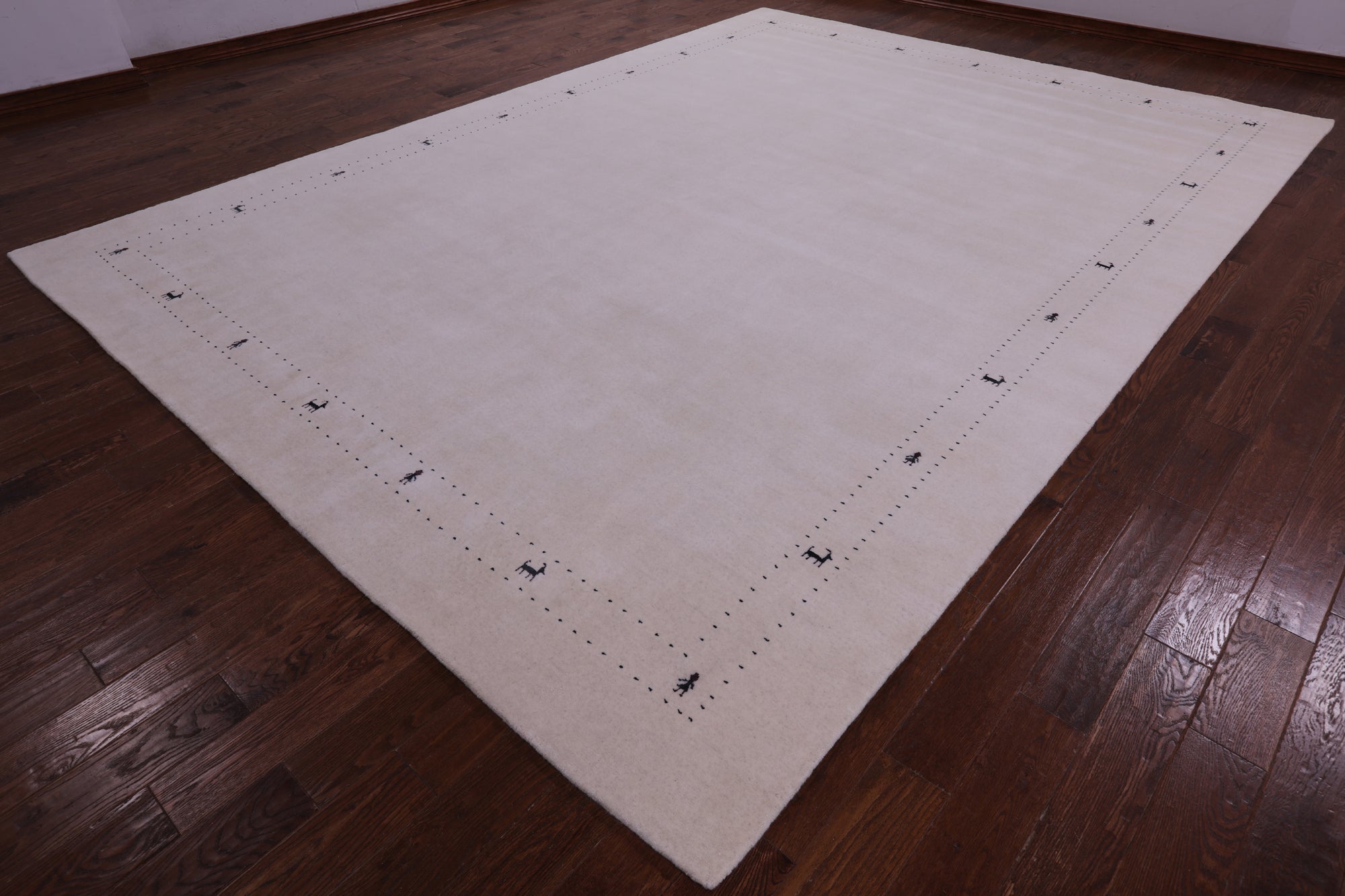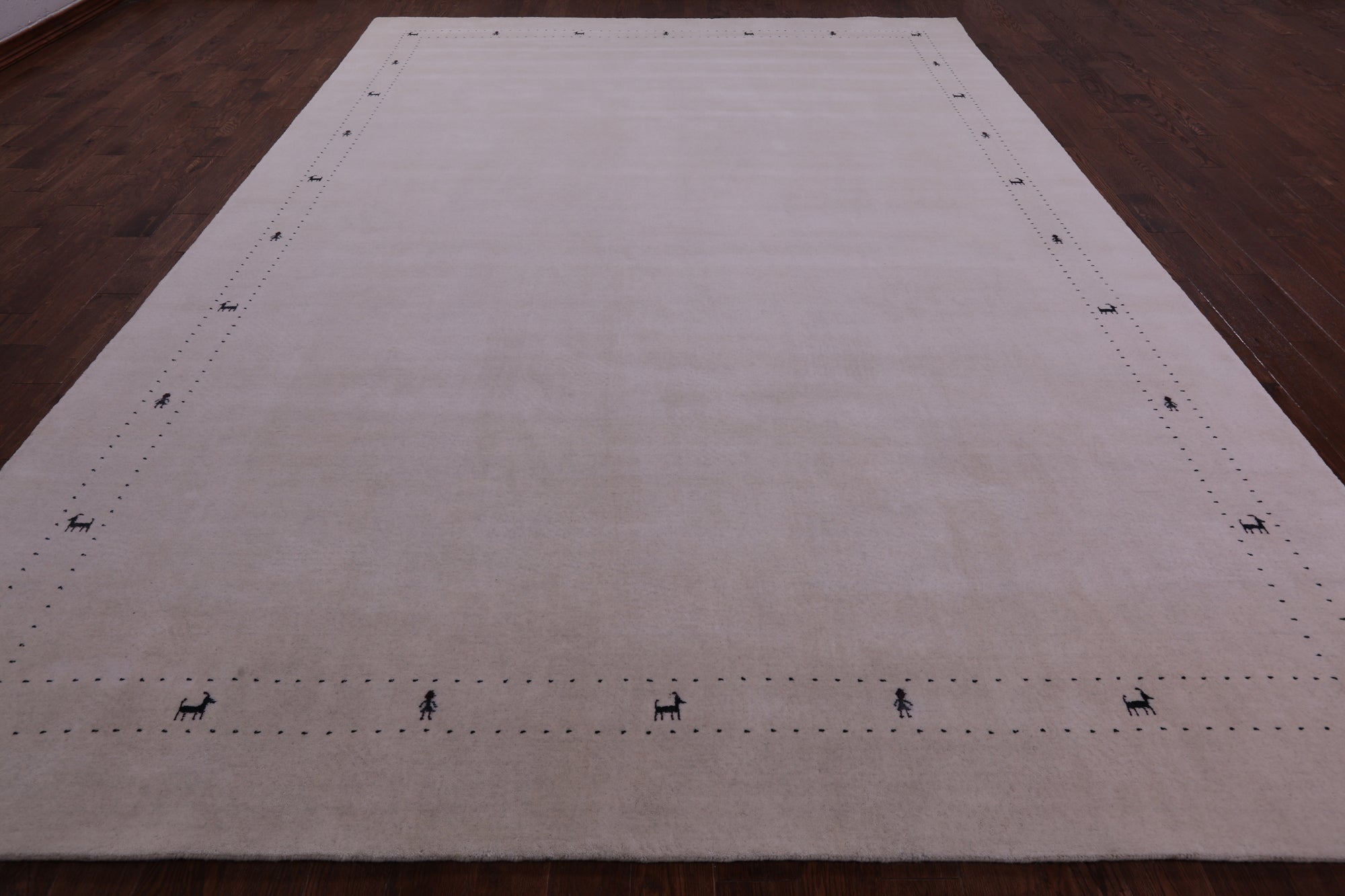 Ivory 10' 0" X 14' 0" Persian Gabbeh Handmade Wool Rug - Q15249