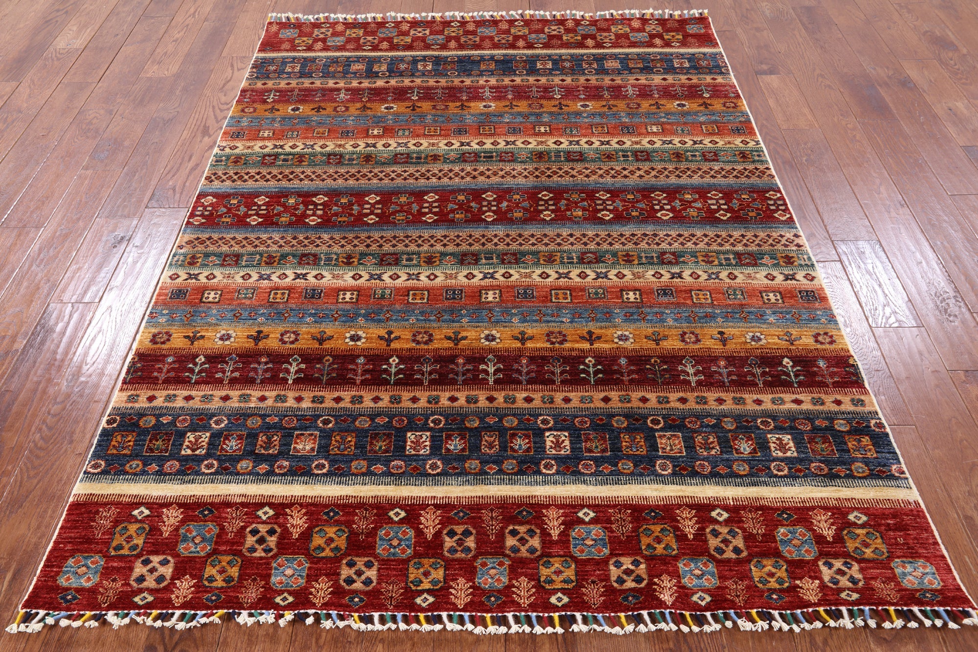 5' 7" X 7' 6" Persian Gabbeh Tribal Hand Knotted Wool Area Rug - P9877 is backordered and will ship as soon as it is back in stock.