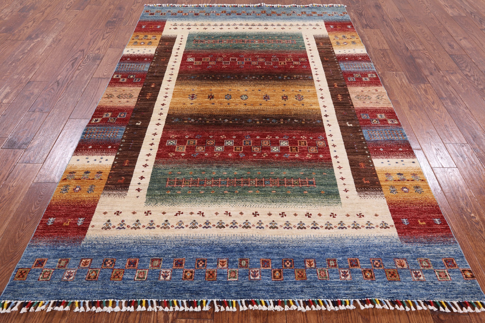 Persian Gabbeh Tribal Hand-Knotted Wool Rug 5' 9" X 8' 3" - P9206