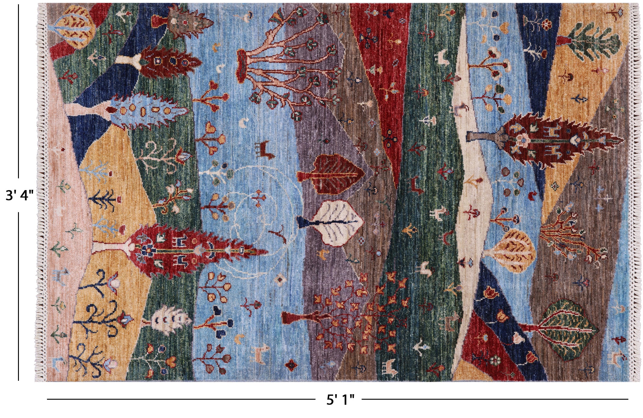 Persian Gabbeh Tribal Handmade Wool Rug 3' 4" X 5' 1" - Q10023