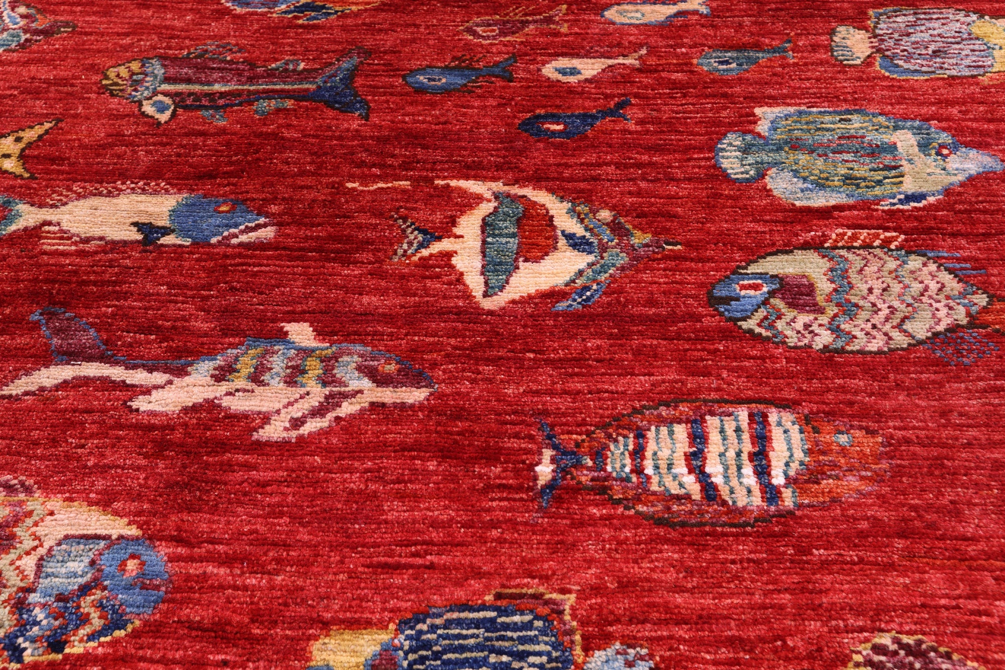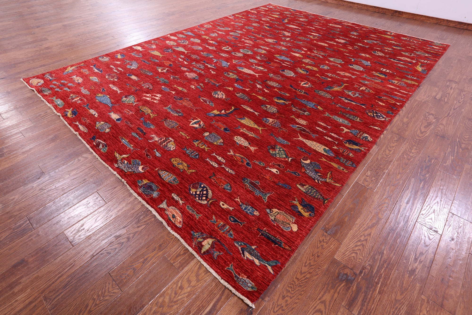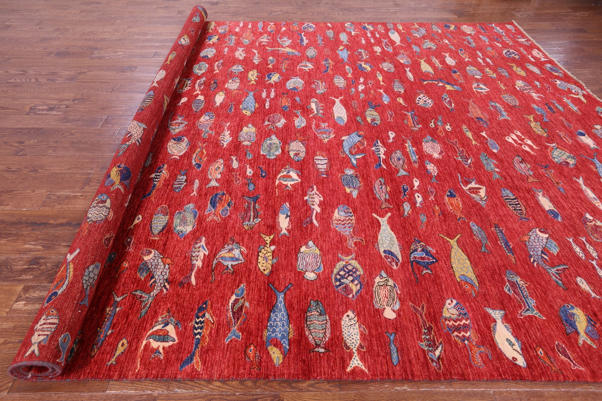 Red 9' 10" X 13' 8" Gabbeh Fish Design Hand Knotted Wool Rug - Q22862 is backordered and will ship as soon as it is back in stock.