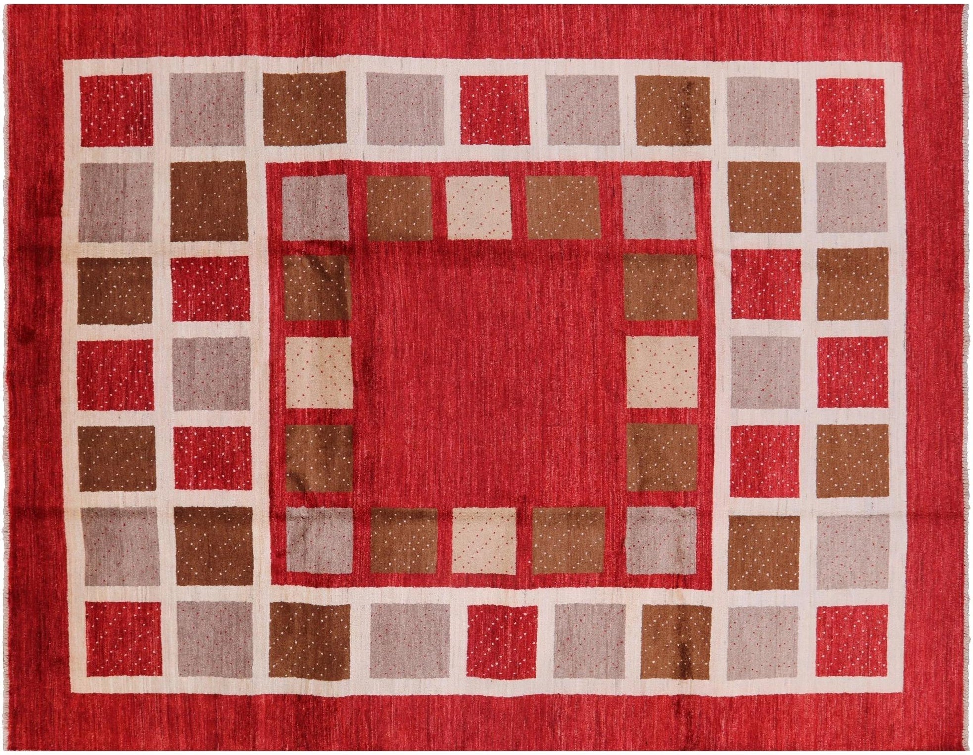 Gabbeh rugs are hand knotted to reflect tribal and other patterns such as solids, and nomadic designs. The simplistic "child-like" bold designs of Gabbeh rugs is what makes them perfectly suitable for any decor. Gabbeh rugs are made from high-quality wool and have a high density of knots. Gabbeh rugs are hand-knotted and eco-friendly, because only natural dyes are used in their production.