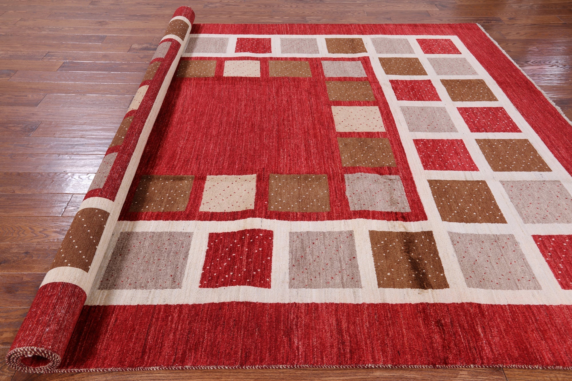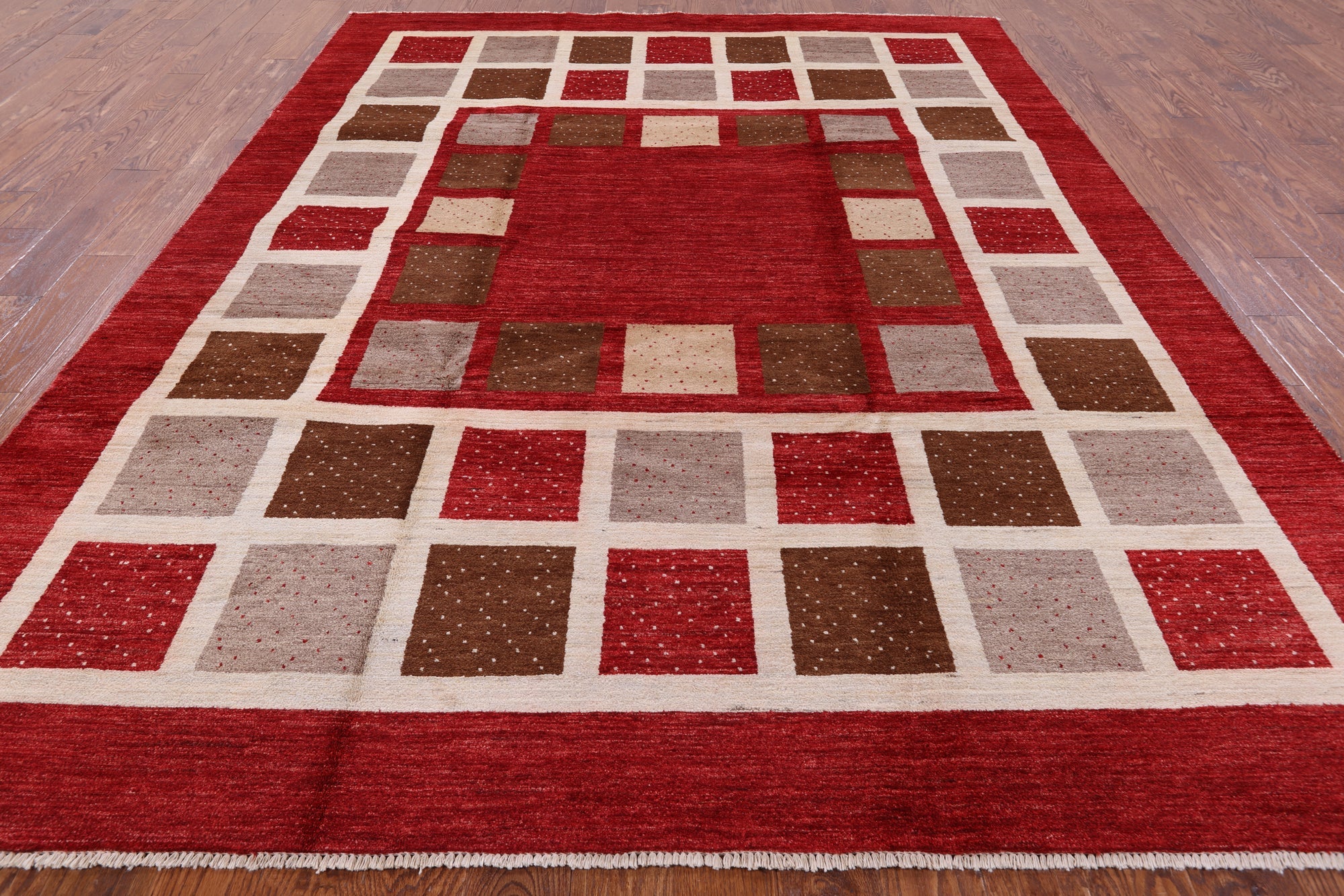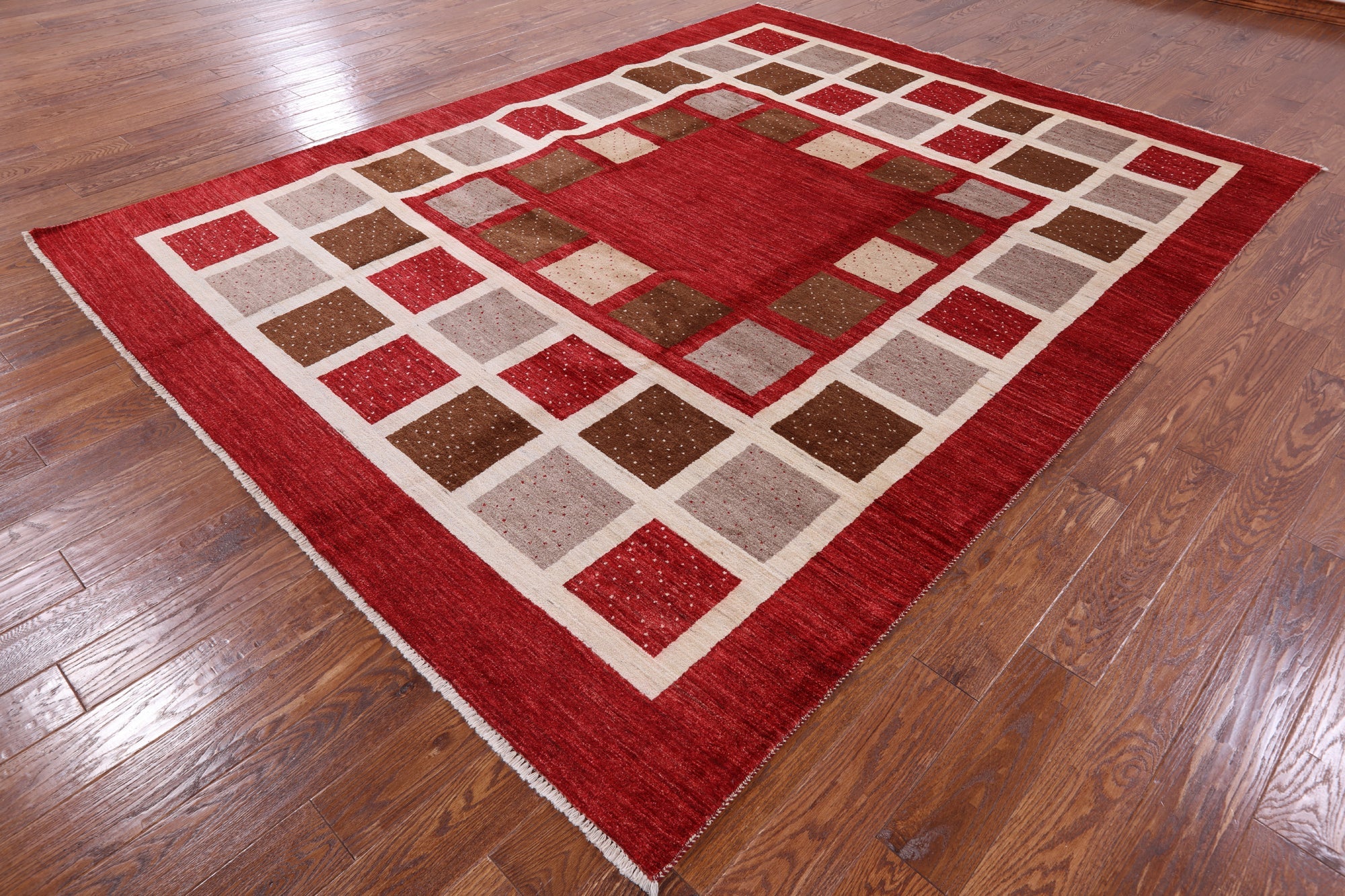 Red 8' 2" X 10' 6" Hand Knotted Persian Gabbeh Wool Rug - P4225 is backordered and will ship as soon as it is back in stock.