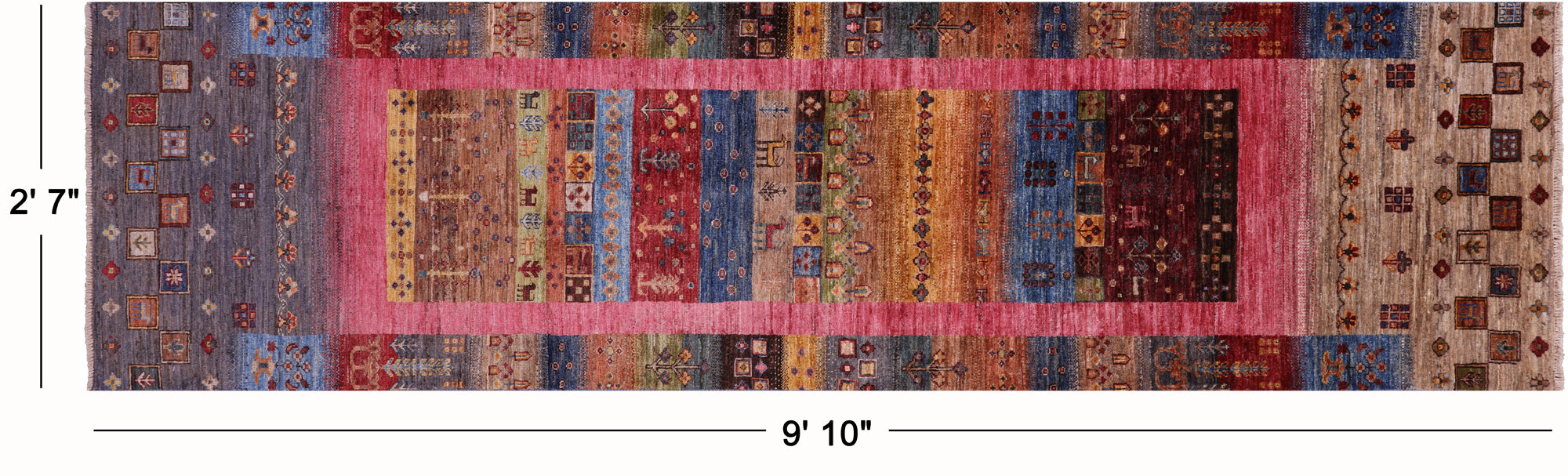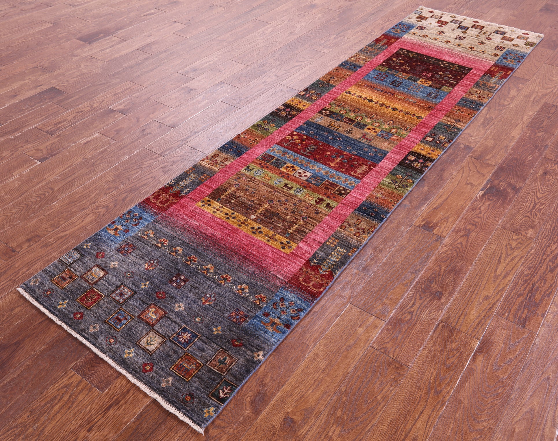 Runner Persian Gabbeh Tribal Hand-Knotted Wool Rug 2' 7" X 9' 10" - Q23215