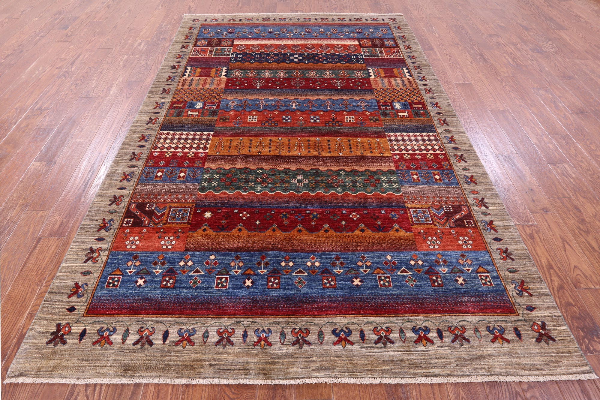 Tribal Persian Gabbeh Hand Knotted Wool Rug 6' 7" X 10' 0" - Q16815