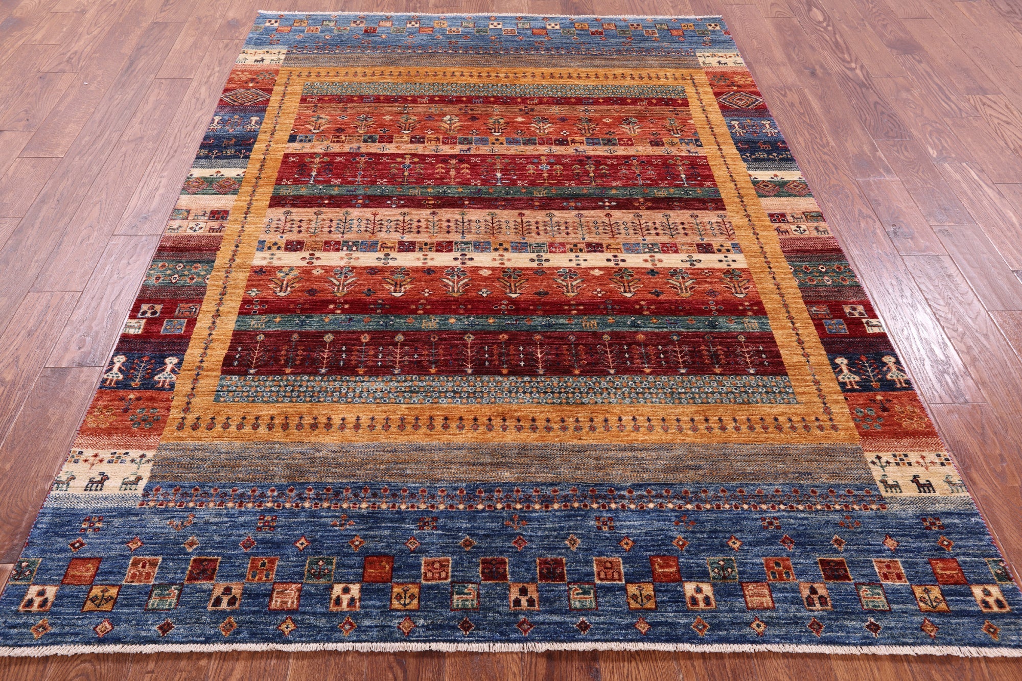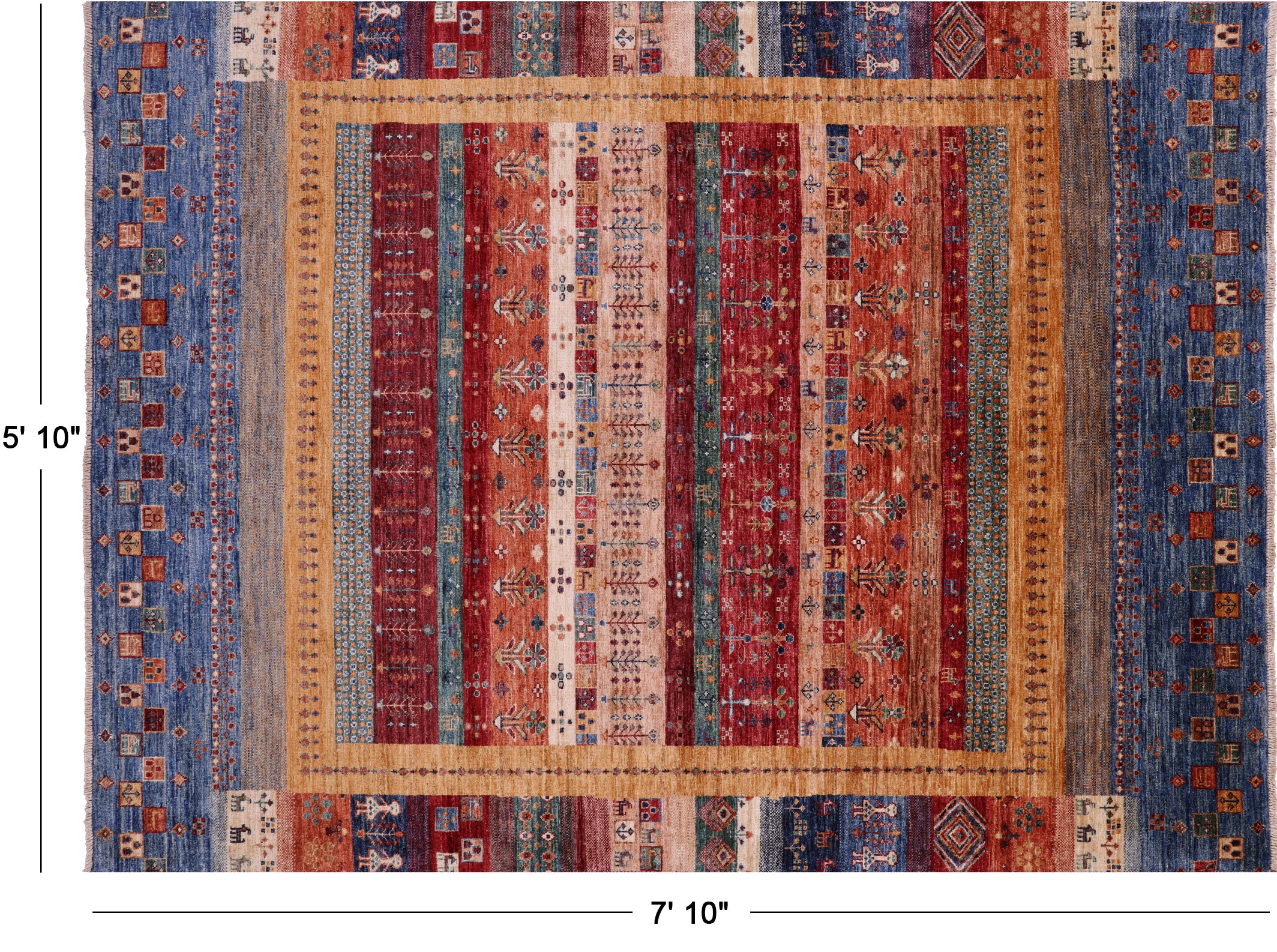 Tribal Persian Gabbeh Hand Knotted Wool Rug 5' 10" X 7' 10" - Q17228