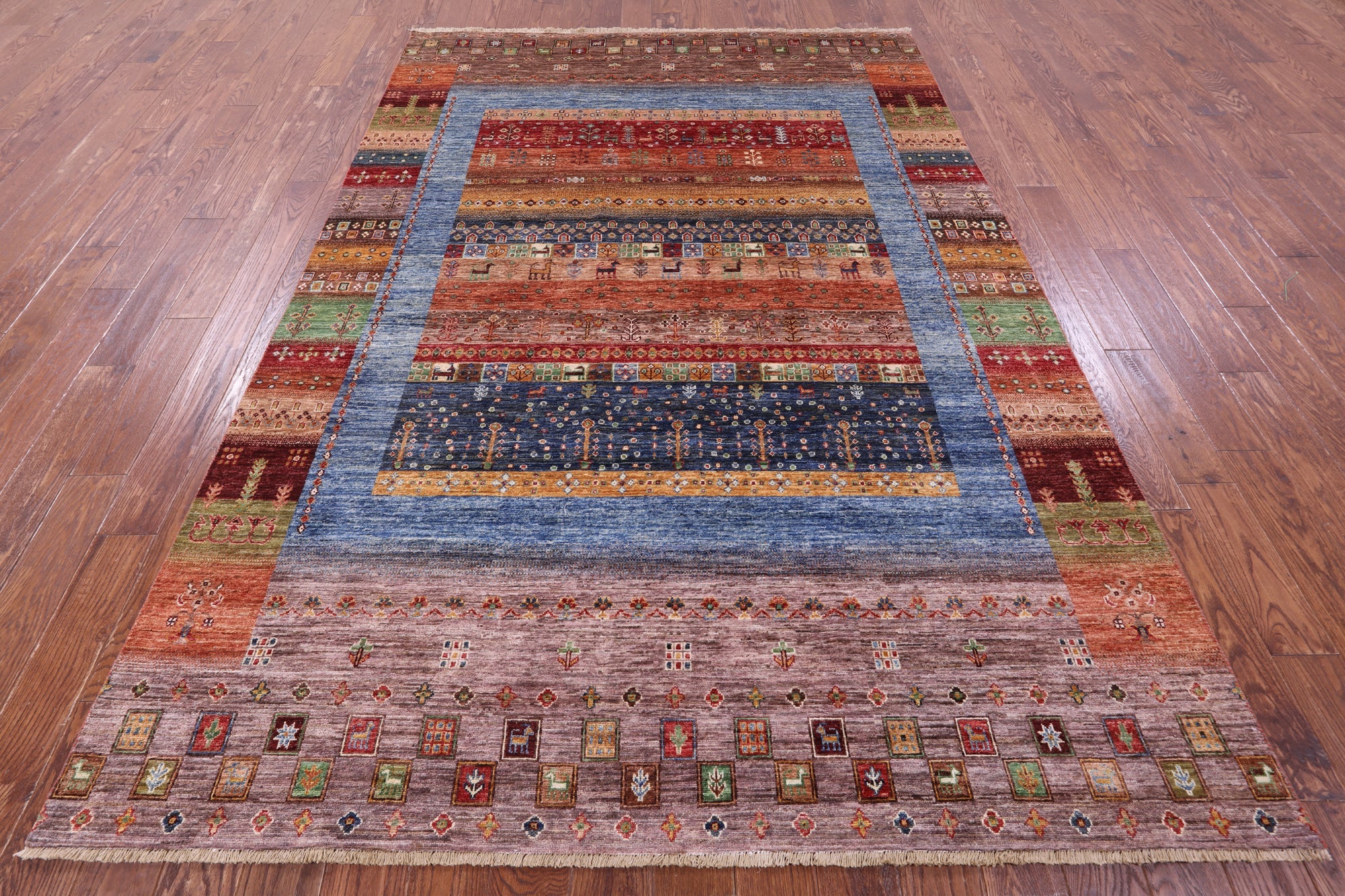 Gabbeh rugs are nothing short of simplistic and tribal, with designs consisting of primarily geometric shapes, animals, and plants. All done in a simplified way and based on the nomadic observation. Commonly brightly colored, these rugs are fun and beautiful and will add a warm touch to any home.