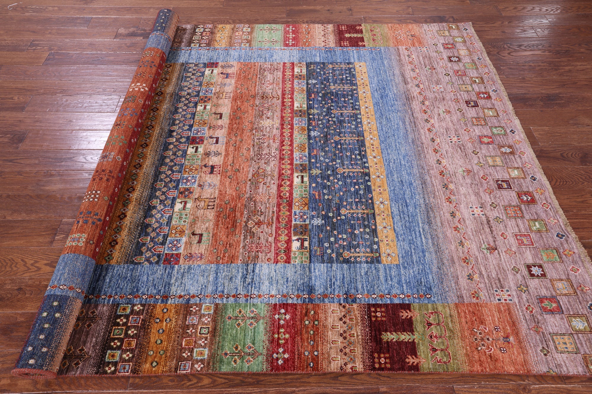 Tribal Persian Gabbeh Hand Knotted Wool Rug 6' 8" X 9' 9" - Q17712