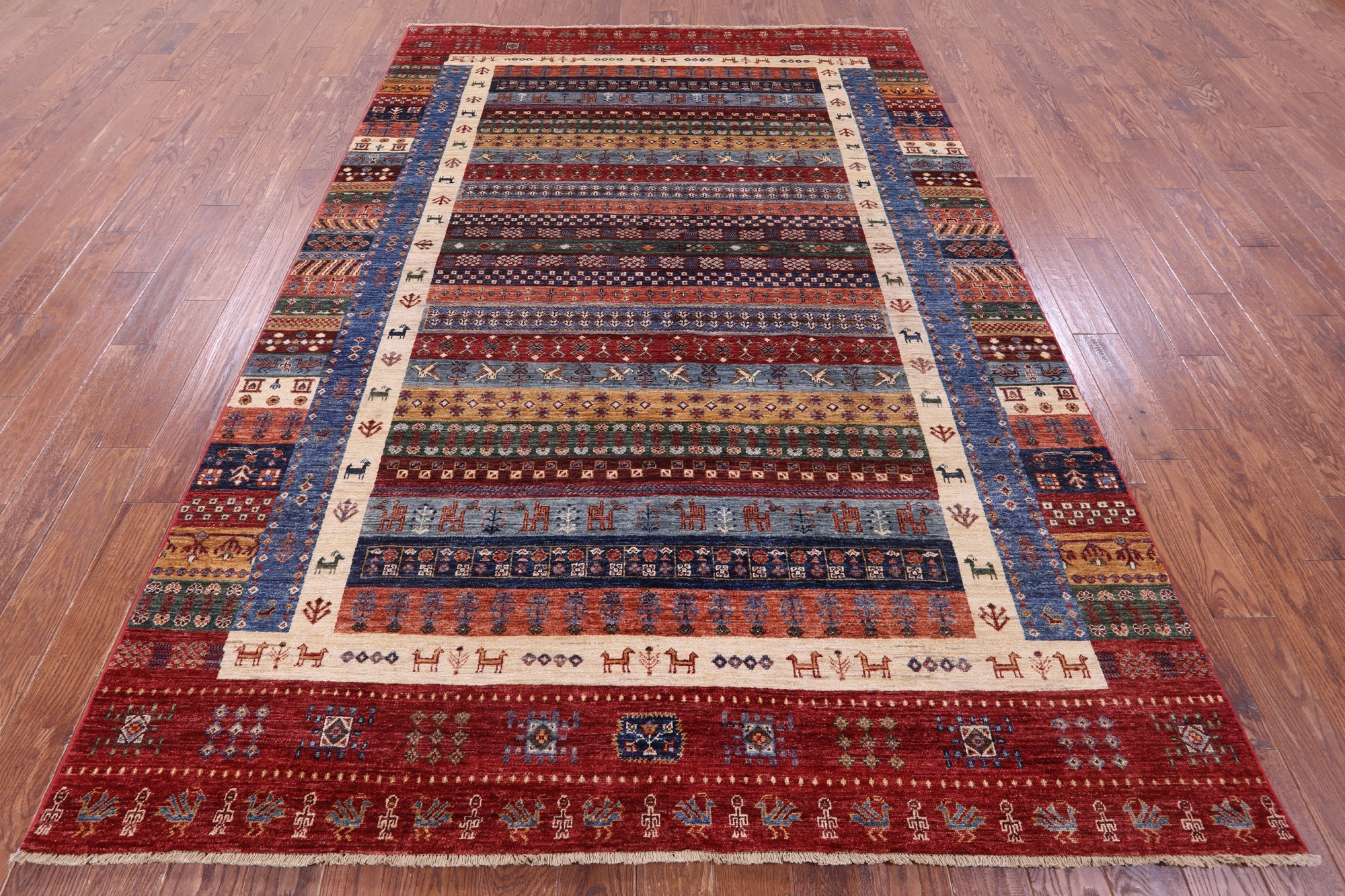 Gabbeh rugs are nothing short of simplistic and tribal, with designs consisting of primarily geometric shapes, animals, and plants. All done in a simplified way and based on the nomadic observation. Commonly brightly colored, these rugs are fun and beautiful and will add a warm touch to any home.