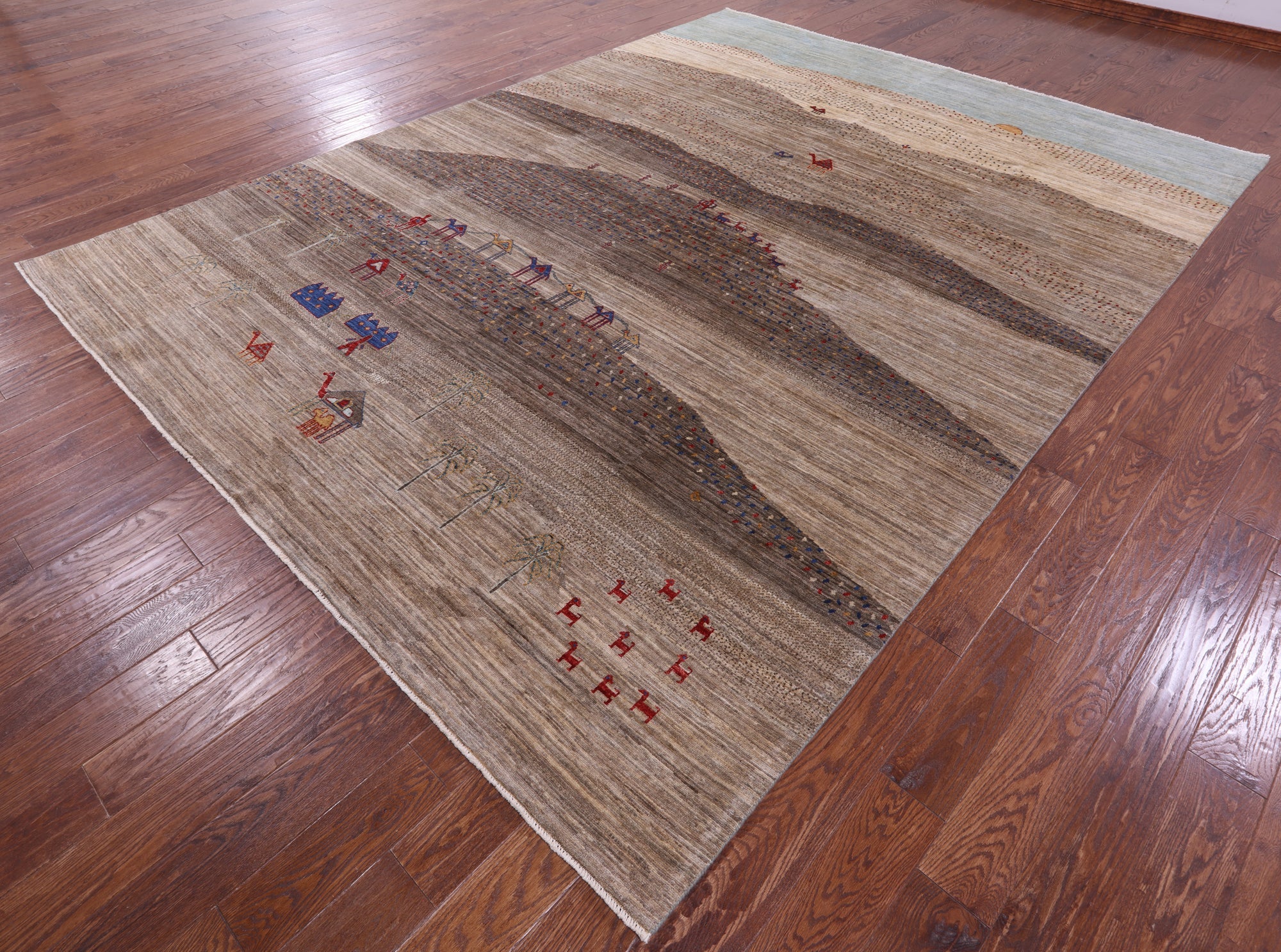 Gabbeh rugs are nothing short of simplistic and tribal, with designs consisting of primarily geometric shapes, animals, and plants. All done in a simplified way and based on the nomadic observation. Commonly brightly colored, these rugs are fun and beautiful and will add a warm touch to any home.