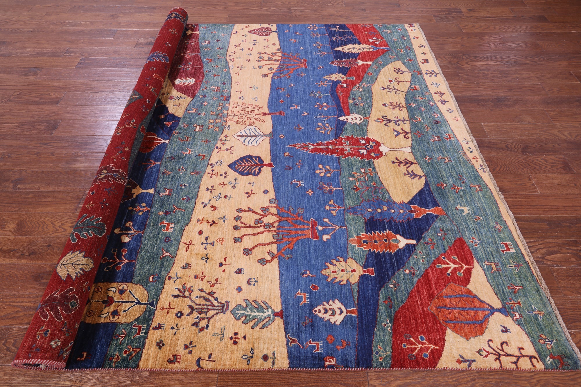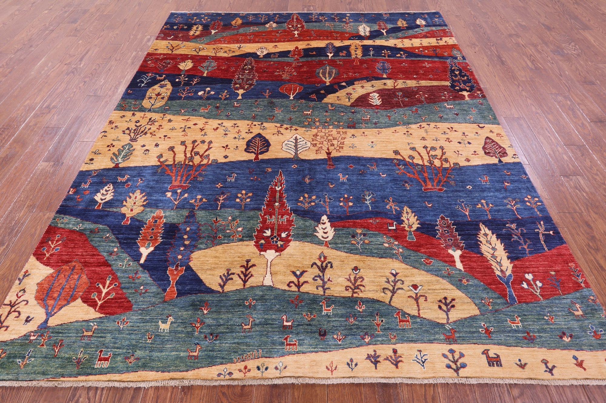 Gabbeh rugs are nothing short of simplistic and tribal, with designs consisting of primarily geometric shapes, animals, and plants. All done in a simplified way and based on the nomadic observation. Commonly brightly colored, these rugs are fun and beautiful and will add a warm touch to any home.