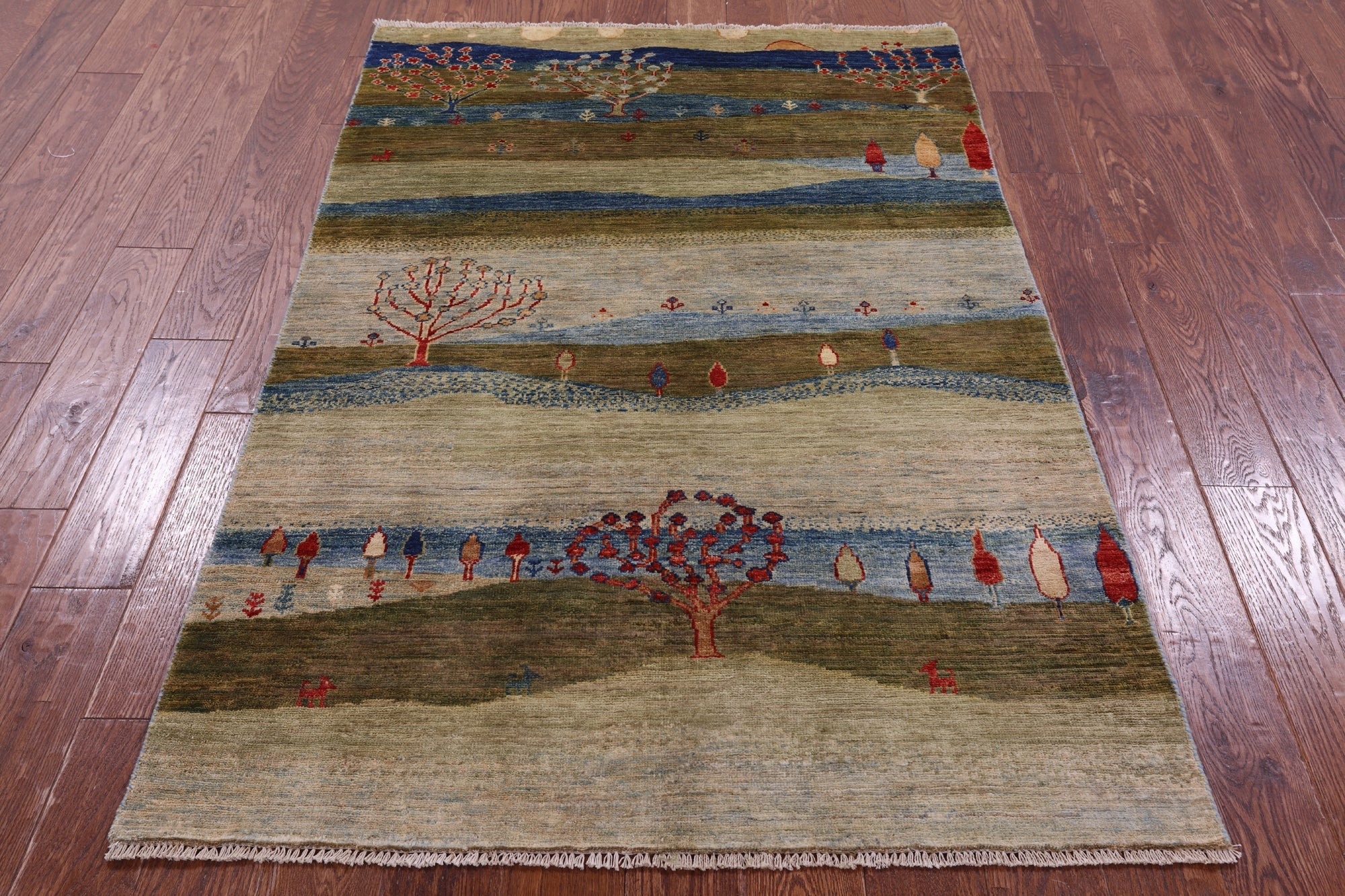 Gabbeh rugs are nothing short of simplistic and tribal, with designs consisting of primarily geometric shapes, animals, and plants. All done in a simplified way and based on the nomadic observation. Commonly brightly colored, these rugs are fun and beautiful and will add a warm touch to any home.