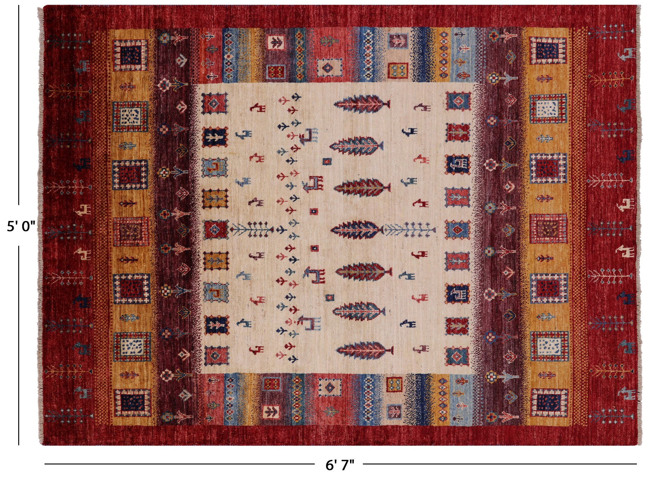 5' 0" X 6' 7" Tribal Persian Gabbeh Hand Knotted Wool Rug - Q8175