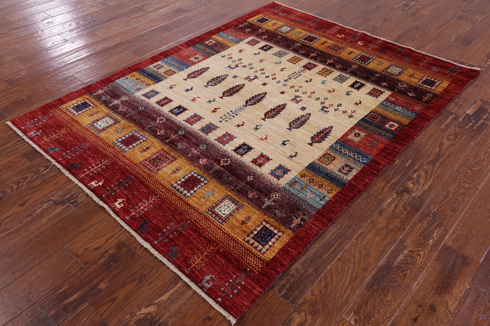 5' 0" X 6' 7" Tribal Persian Gabbeh Hand Knotted Wool Rug - Q8175 is backordered and will ship as soon as it is back in stock.