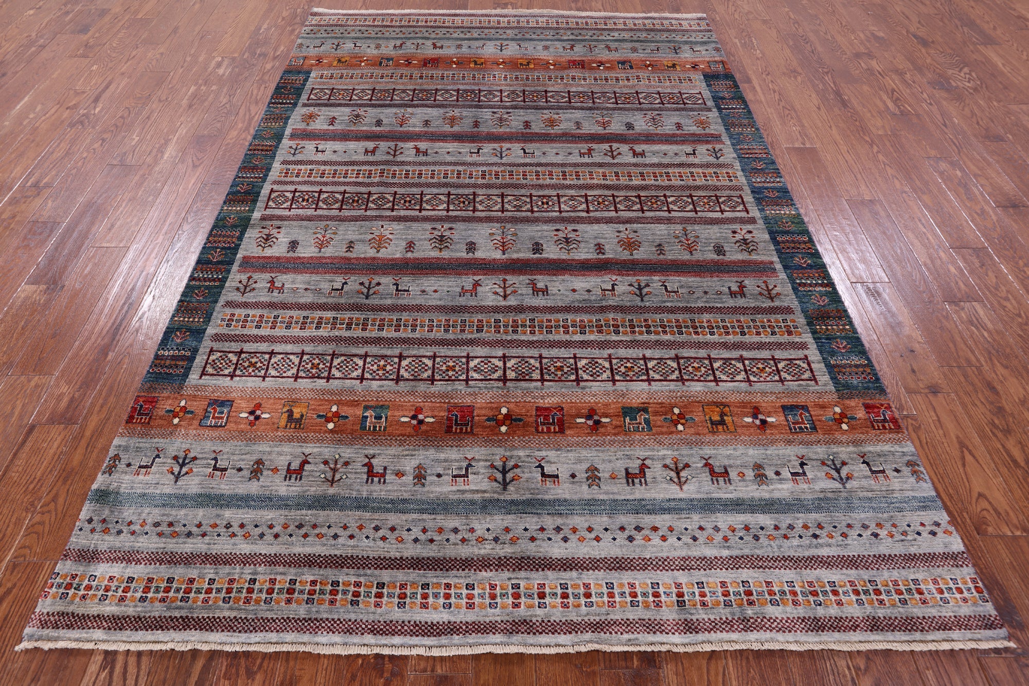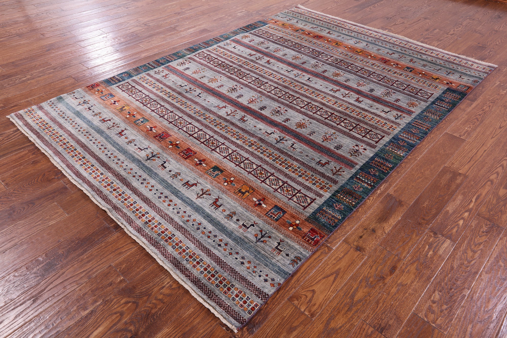 Tribal Persian Gabbeh Hand Knotted Wool Rug 6' 7" X 9' 8" - Q9758