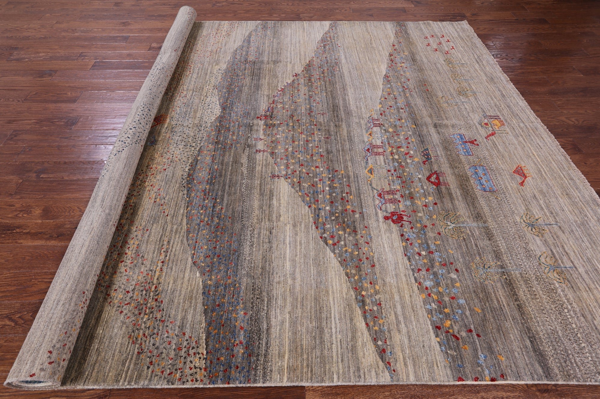 Tribal Persian Gabbeh Handmade Rug 8' 10" X 11' 10" - Q12418 is backordered and will ship as soon as it is back in stock.