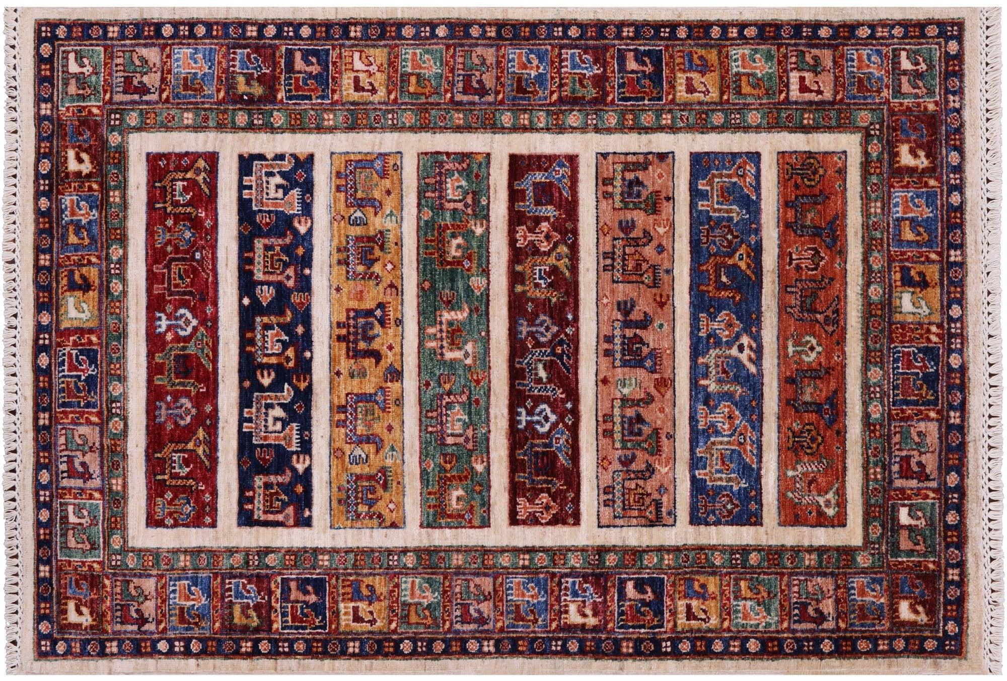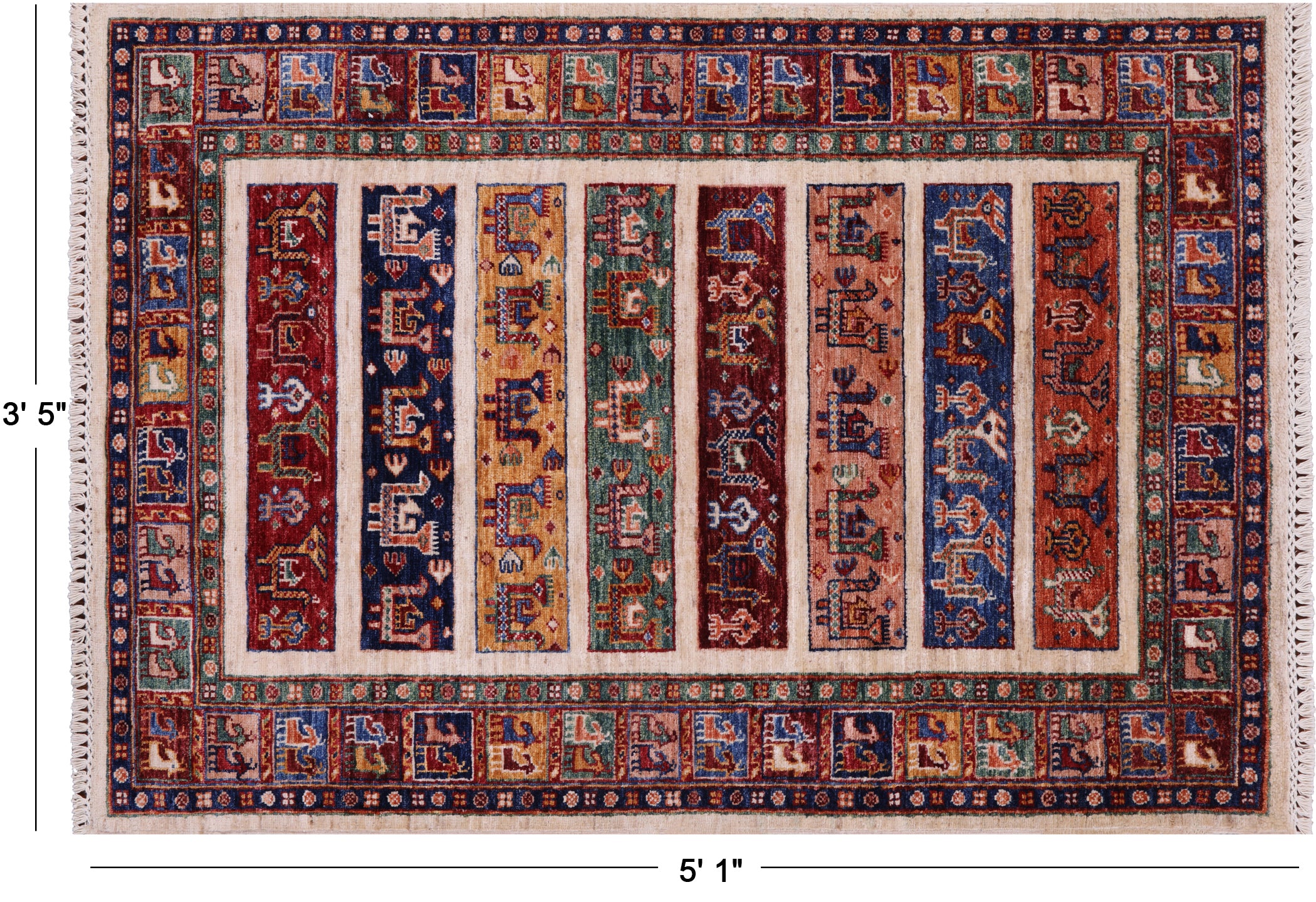3' 5" X 5' 1" Tribal Persian Gabbeh Handmade Wool Rug - Q11336