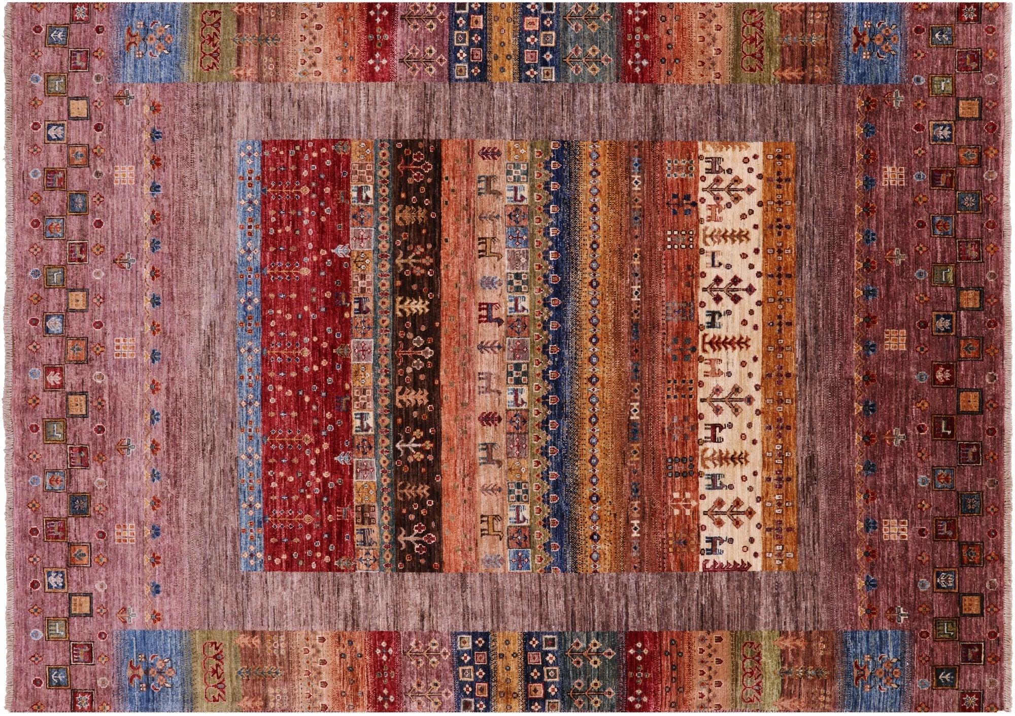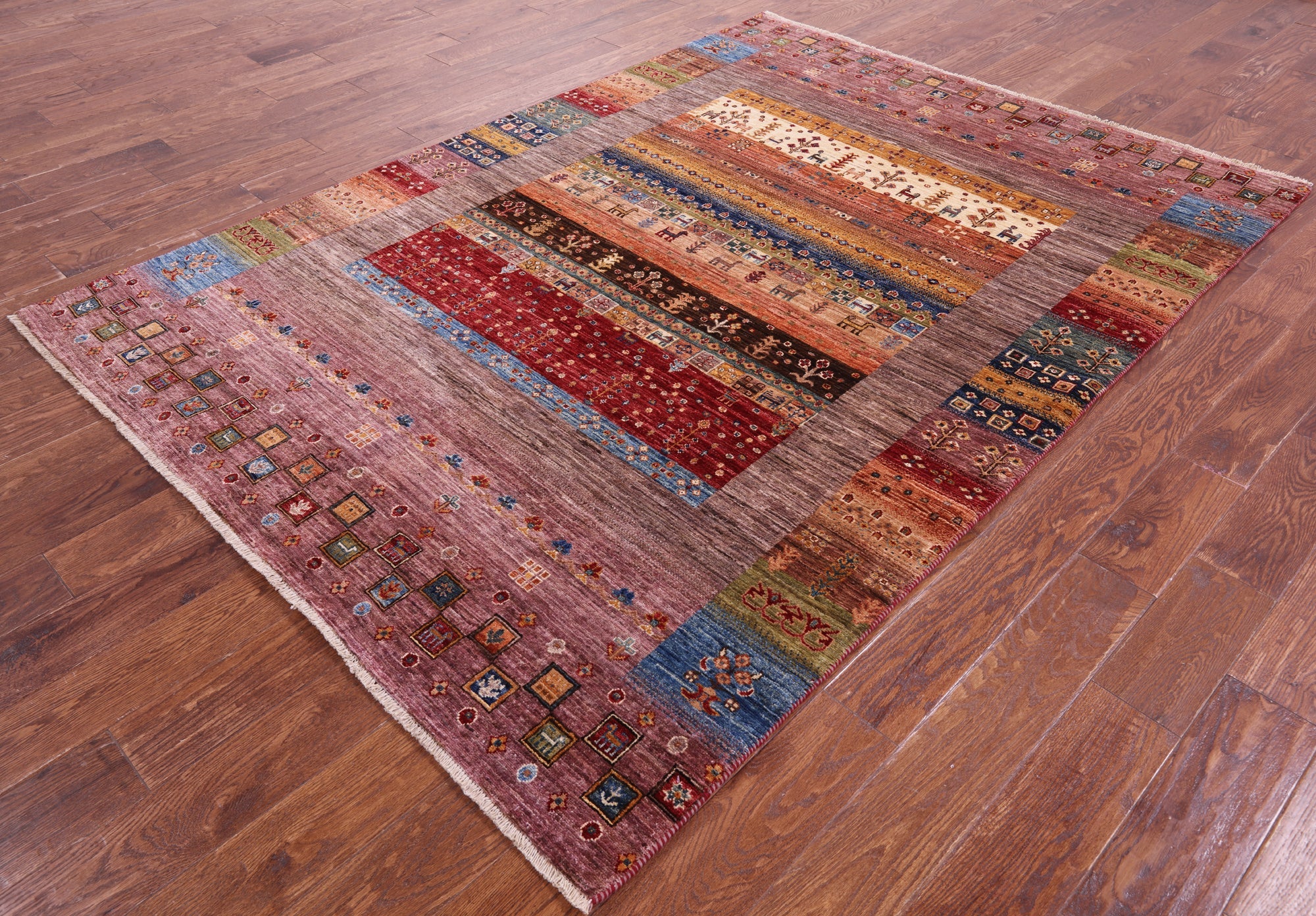 Gabbeh rugs are nothing short of simplistic and tribal, with designs consisting of primarily geometric shapes, animals, and plants. All done in a simplified way and based on the nomadic observation. Commonly brightly colored, these rugs are fun and beautiful and will add a warm touch to any home.