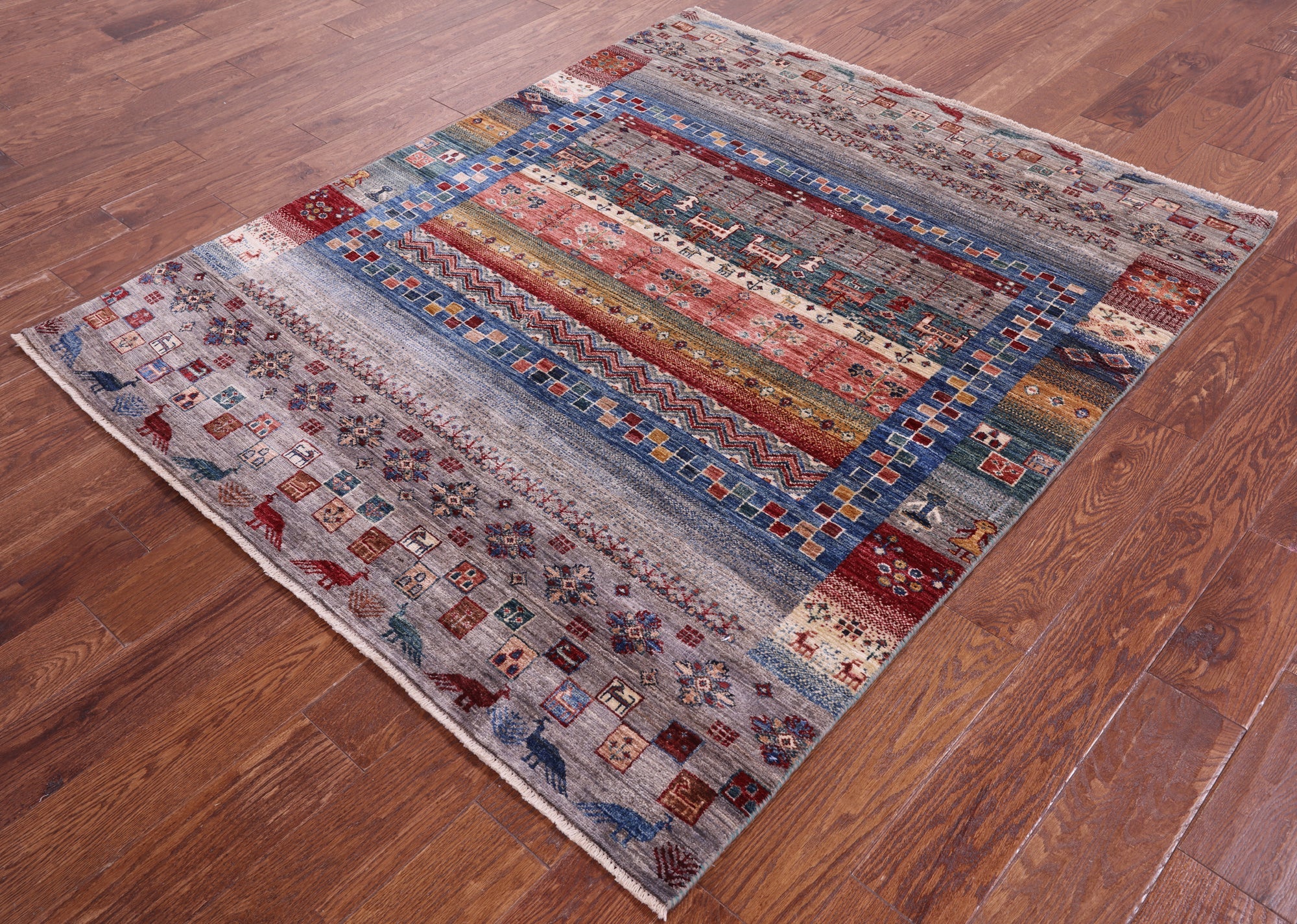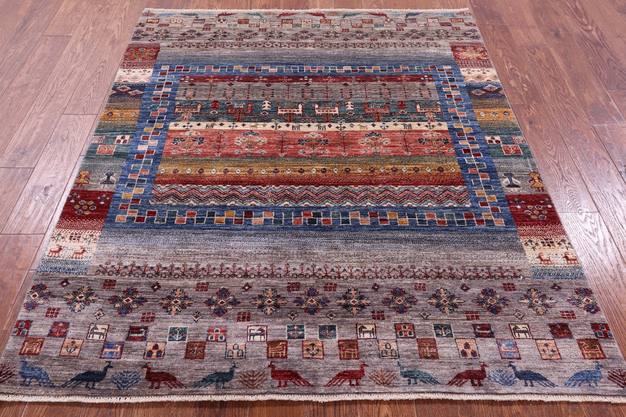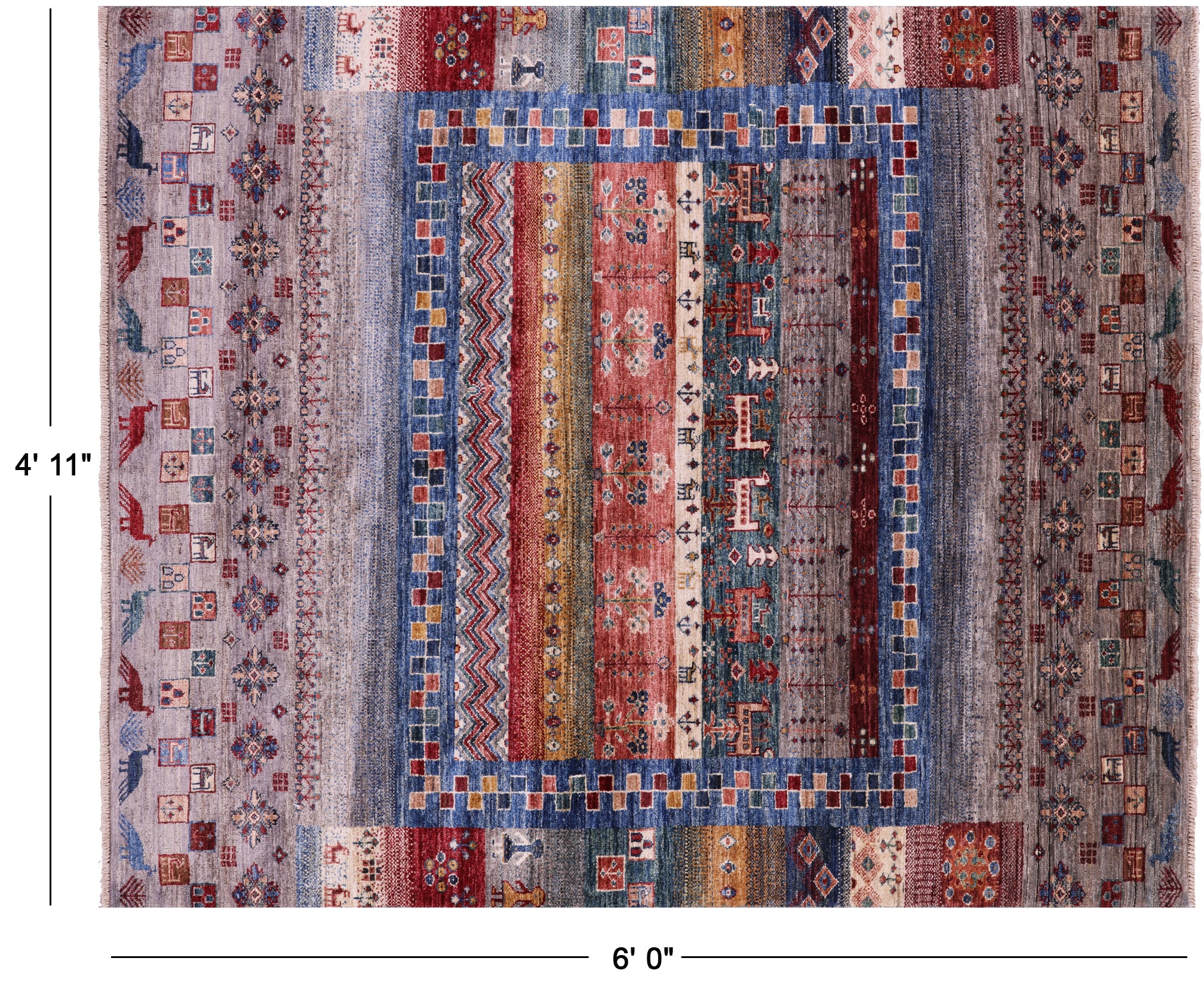 Tribal Persian Gabbeh Handmade Wool Rug 4' 11" X 6' 0" - Q16821
