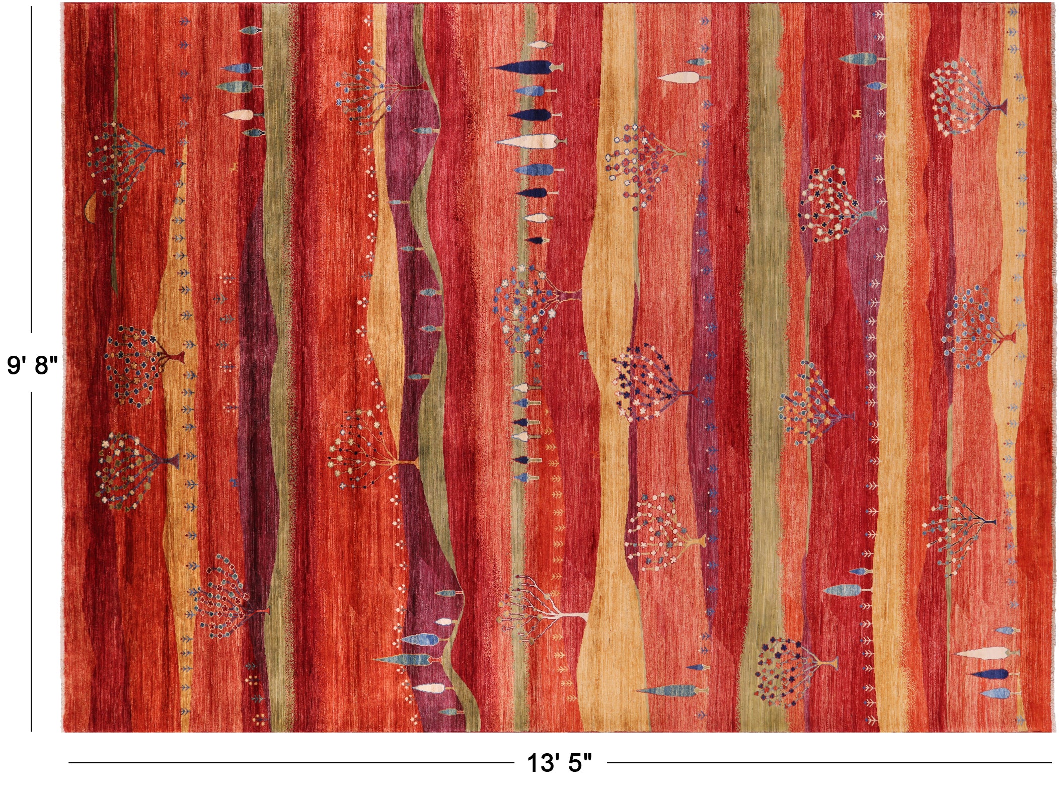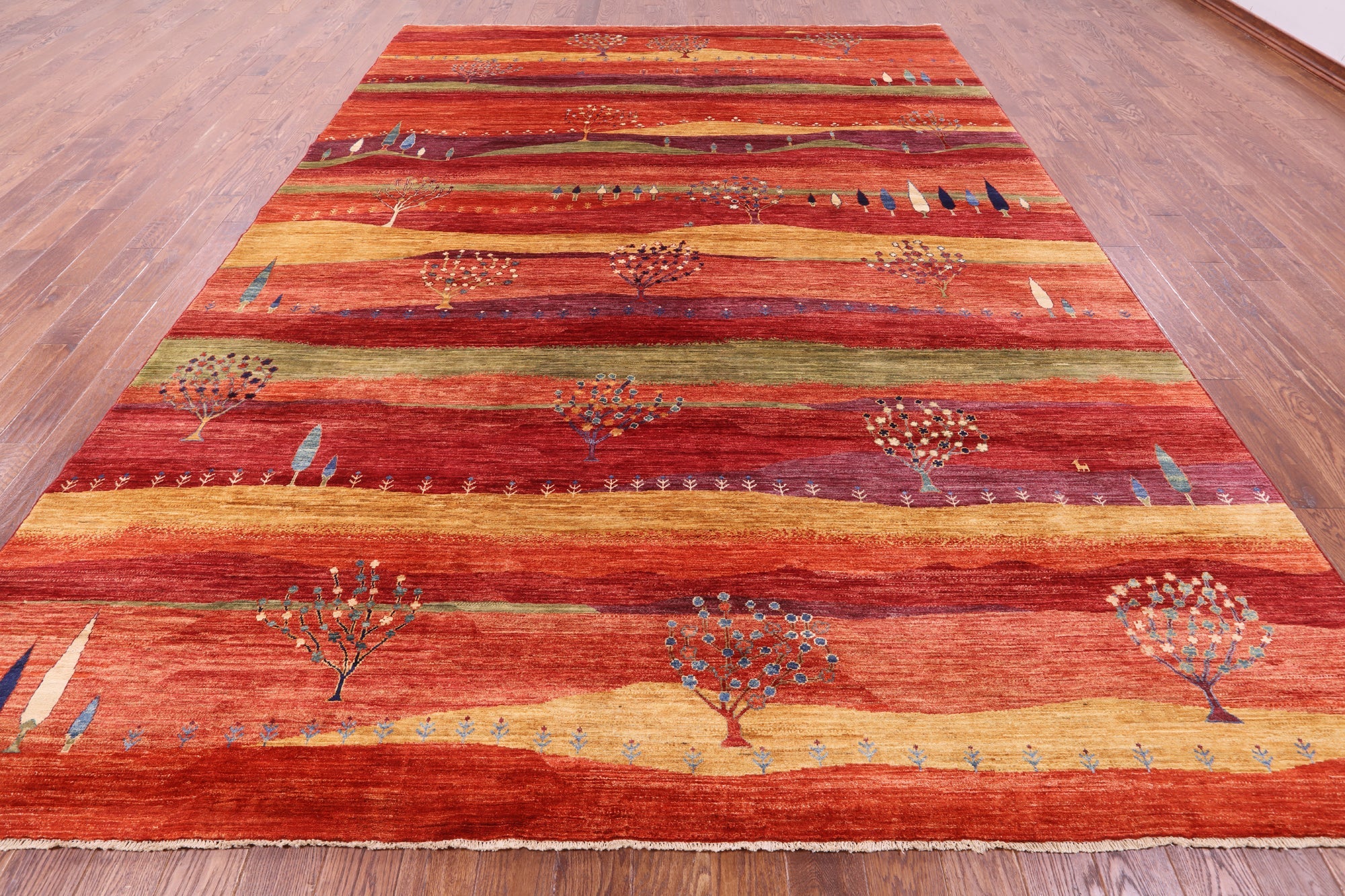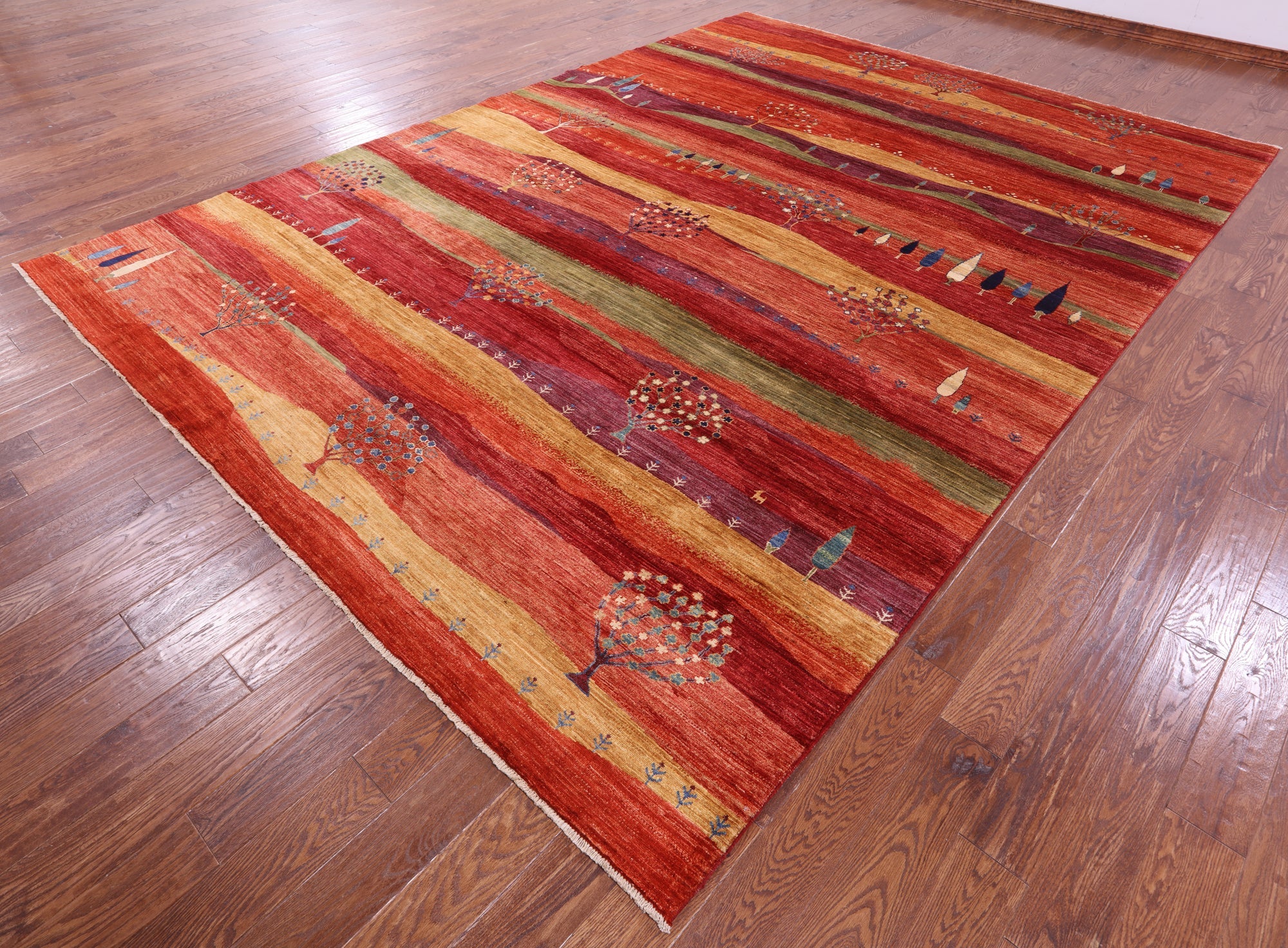 Gabbeh rugs are nothing short of simplistic and tribal, with designs consisting of primarily geometric shapes, animals, and plants. All done in a simplified way and based on the nomadic observation. Commonly brightly colored, these rugs are fun and beautiful and will add a warm touch to any home.