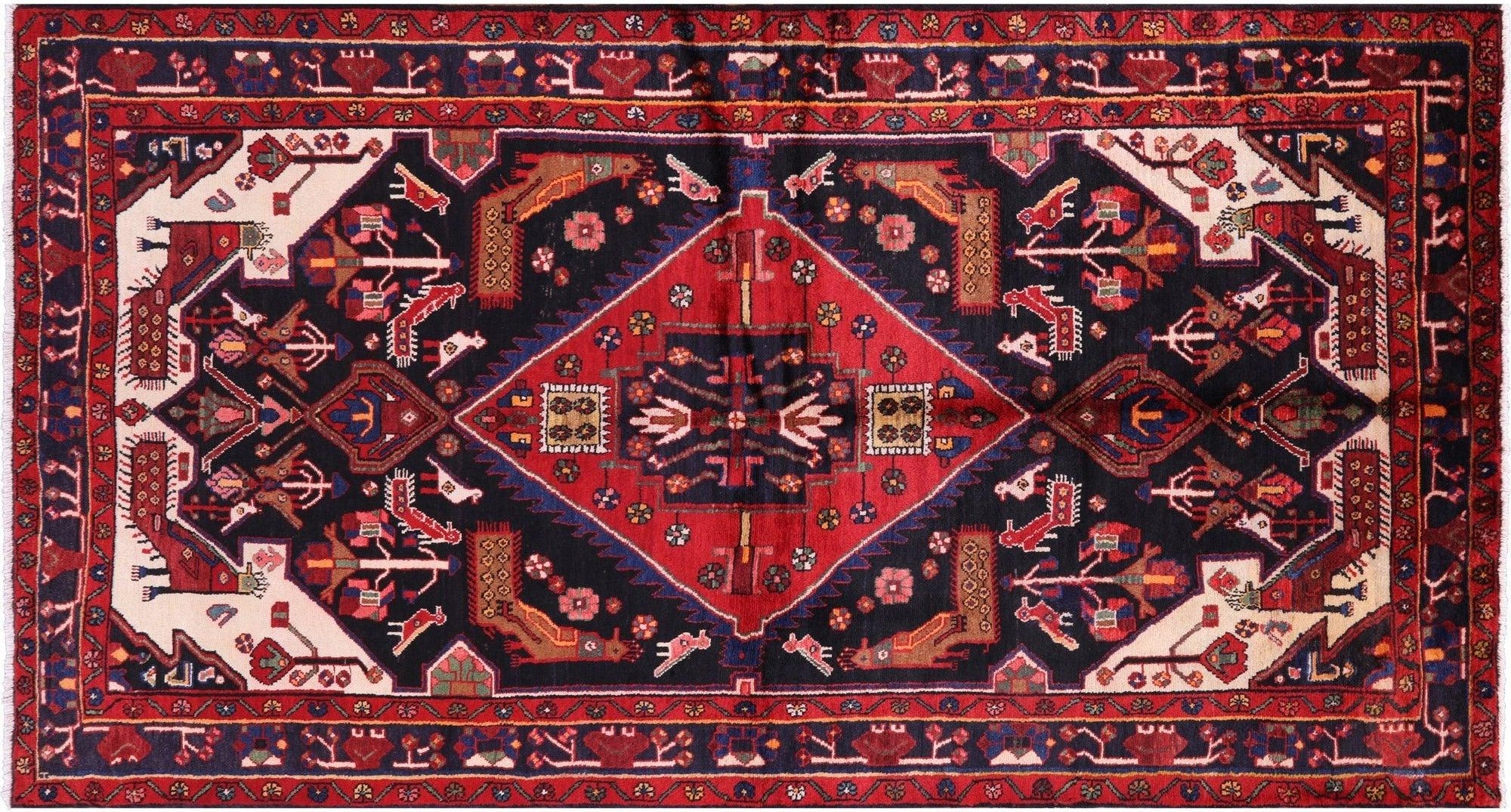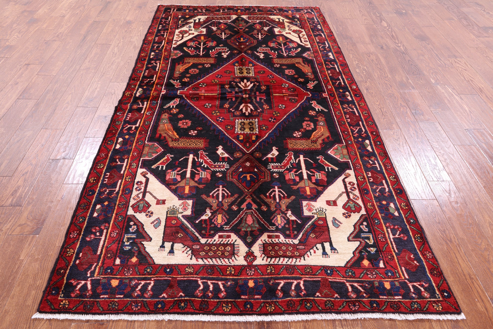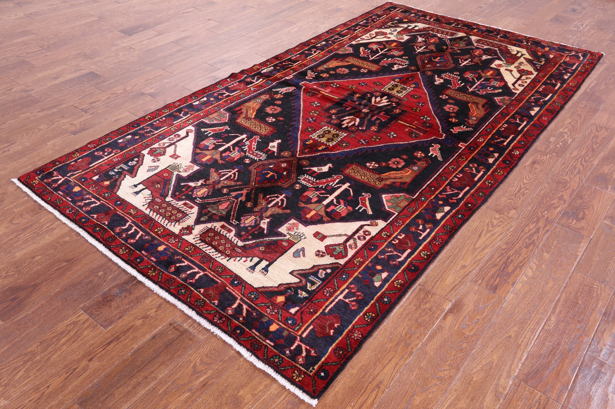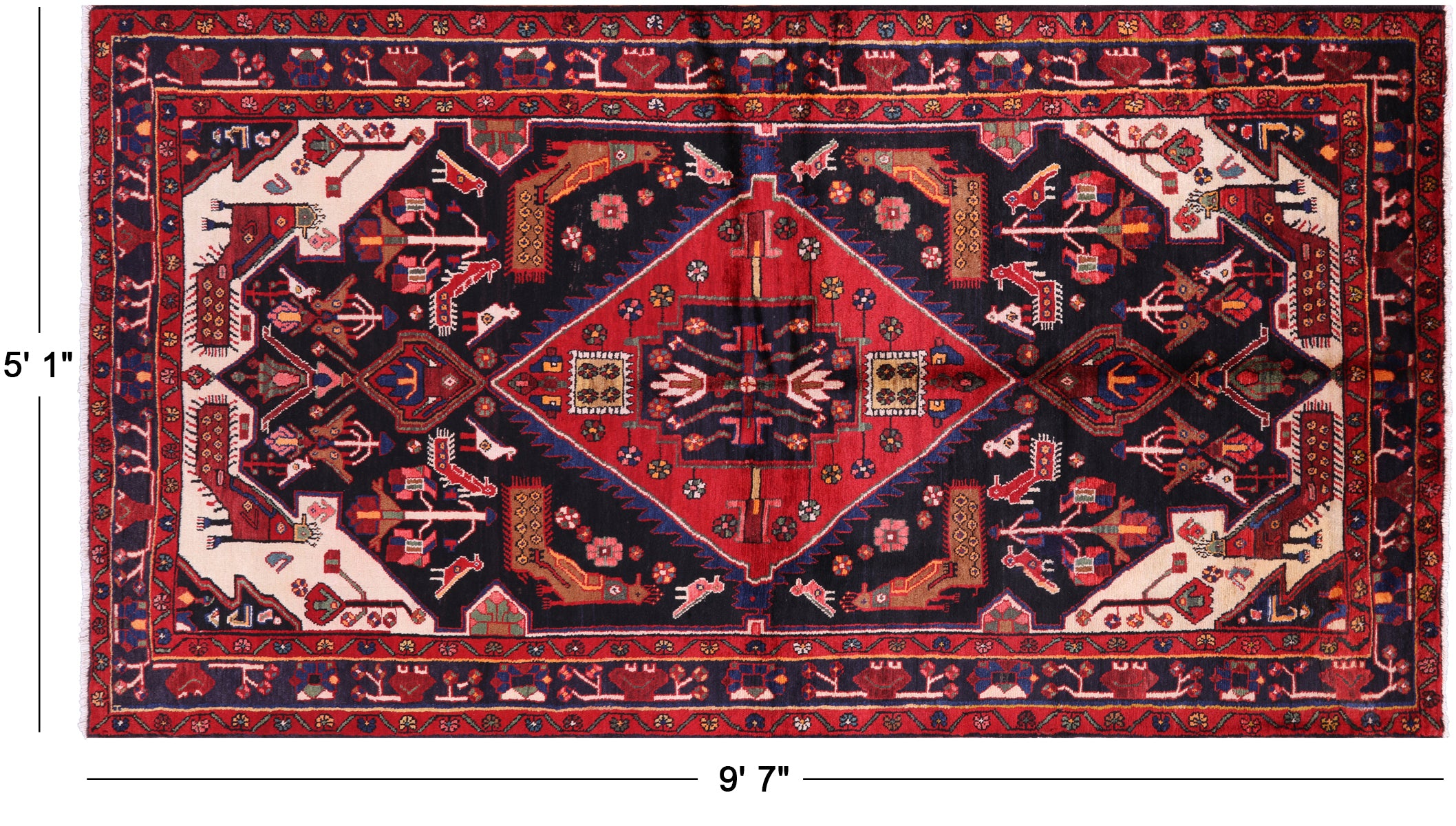 Black 5' 1" X 9' 7" New Pictorial Persian Nahavand Full Pile Hand Knotted Rug - S1643