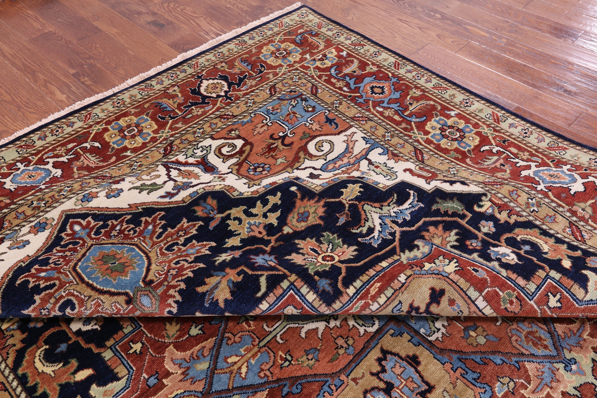 Heriz, Serapi rugs are well known for their bold and angular designs. Many being symmetric, they withhold boldly done geometric and floral-inspired shapes. These shapes are brought out with rich reds, blues, greens, and yellows contrasted against ivory. Heriz, Serapi rugs are very elegant and durable, perfect for a variety of different rooms and spaces within a home.