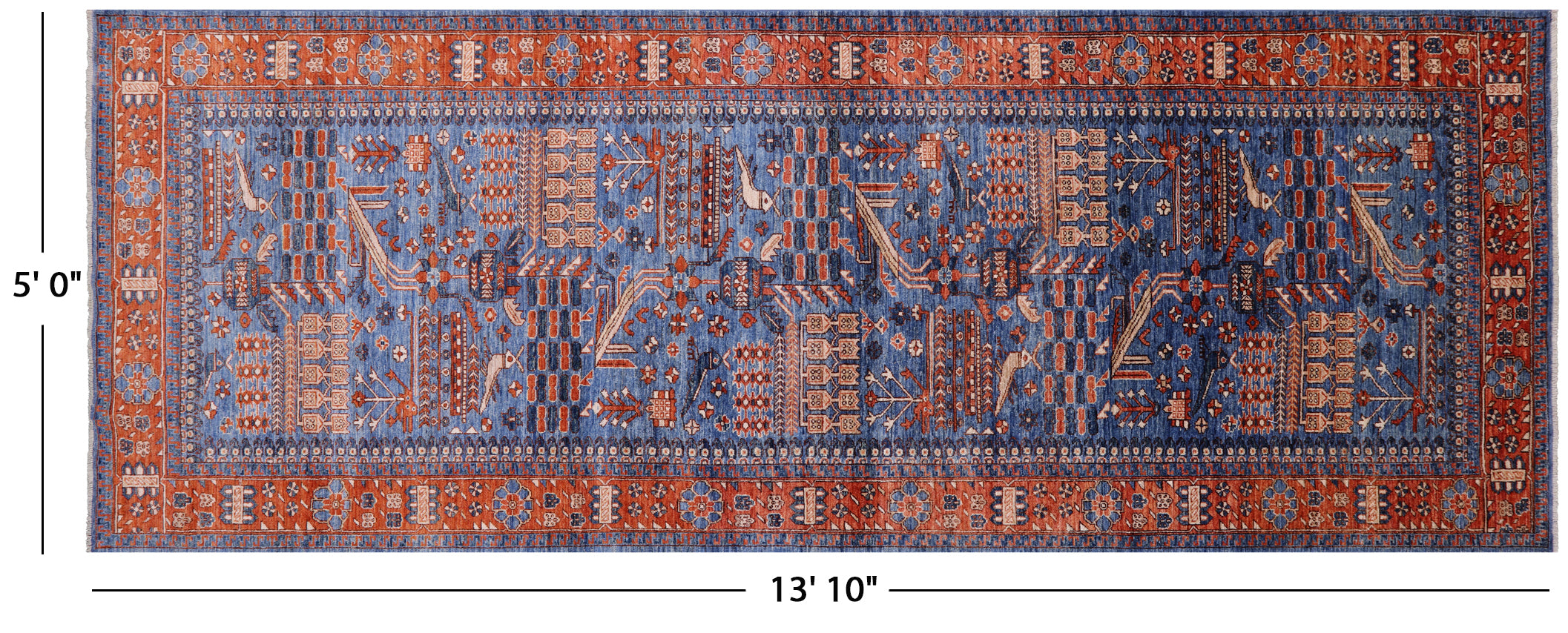 Blue Persian Fine Serapi Handmade Wool Rug 5' 0" X 13' 10" - Q12871