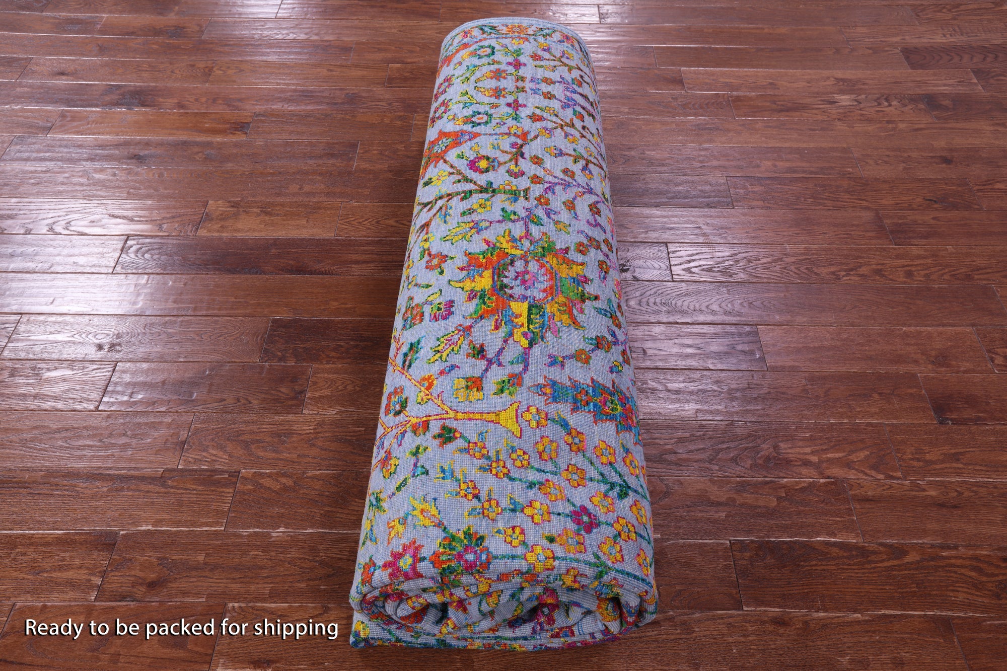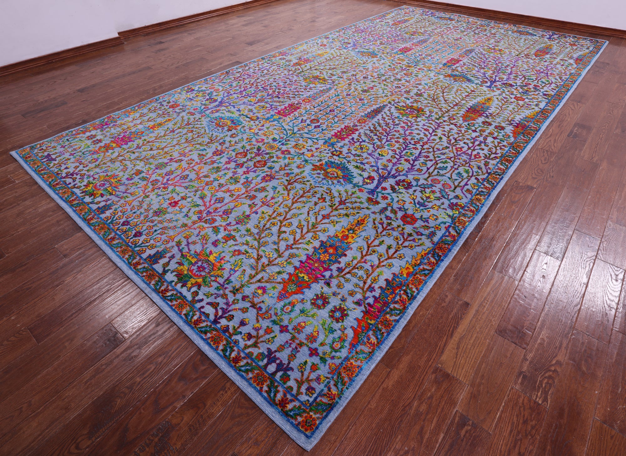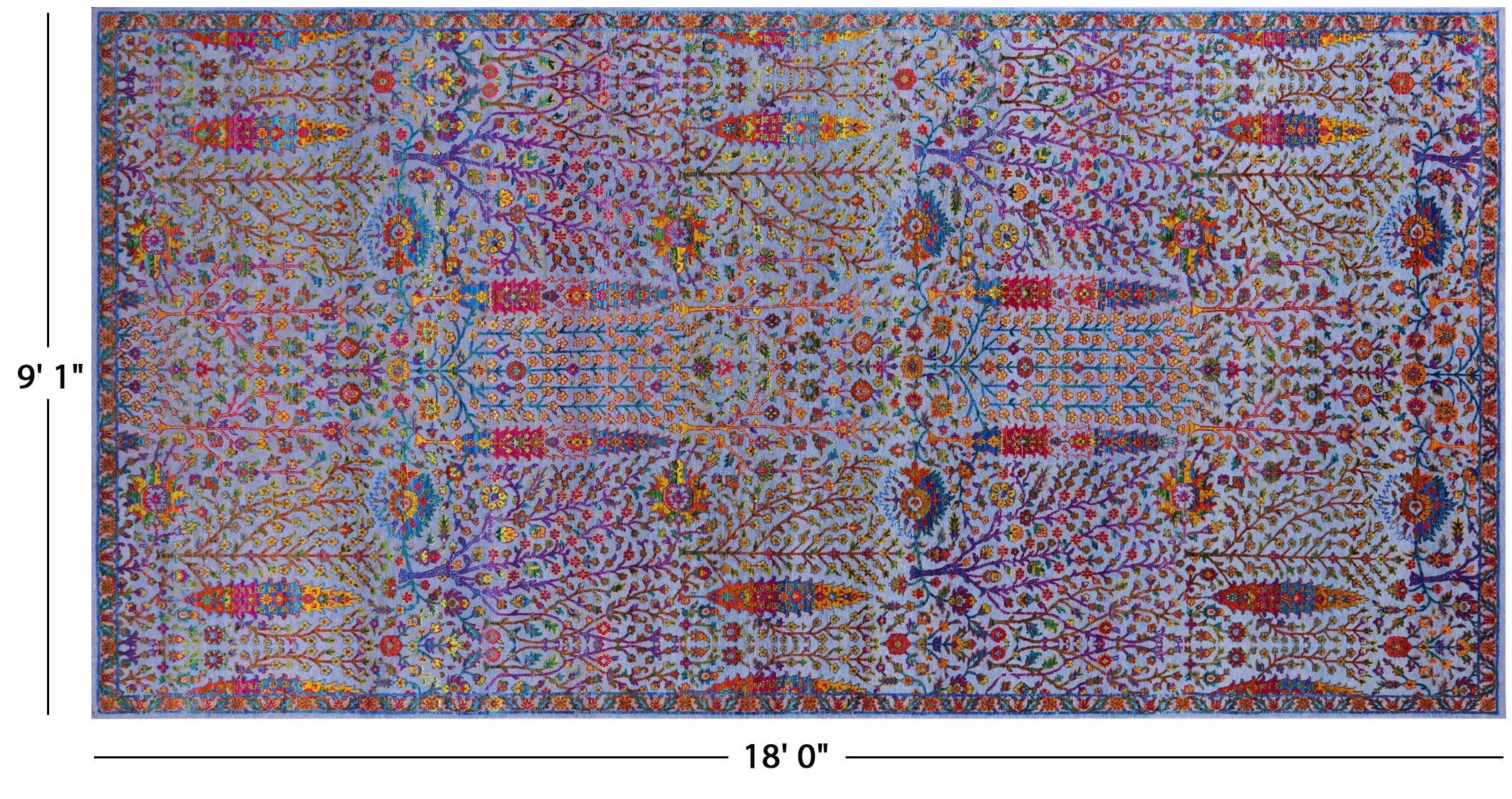 Blue Persian Ziegler Hand Knotted Wool & Silk Rug 9' 1" X 18' 0" - Q22119