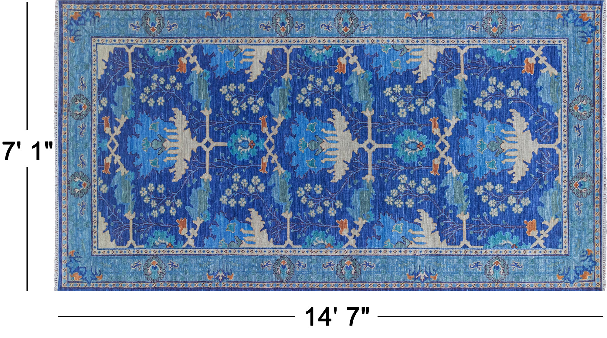 Blue 7' 1" X 14' 7" William Morris Hand Knotted Wool Rug - Q23688