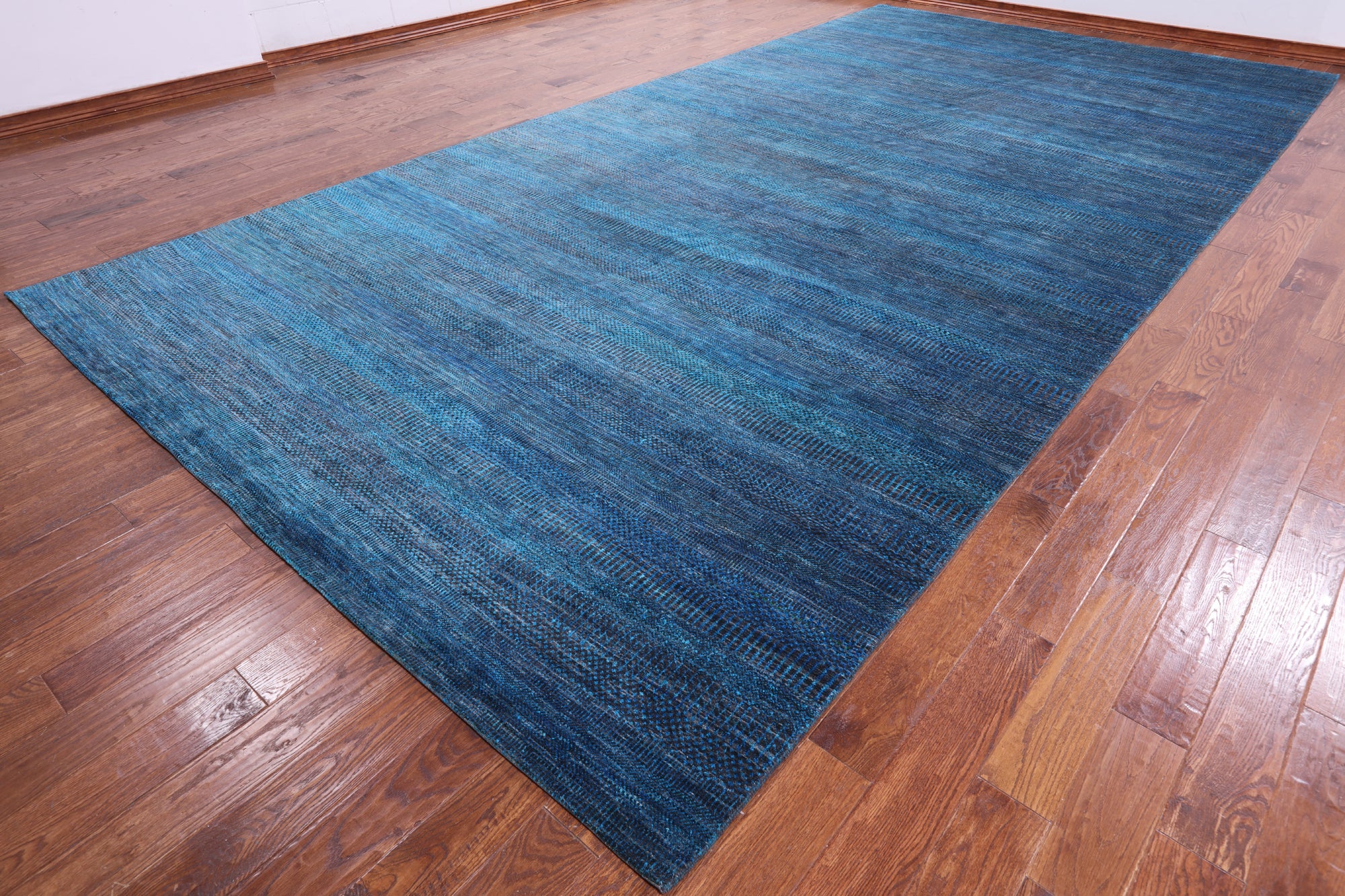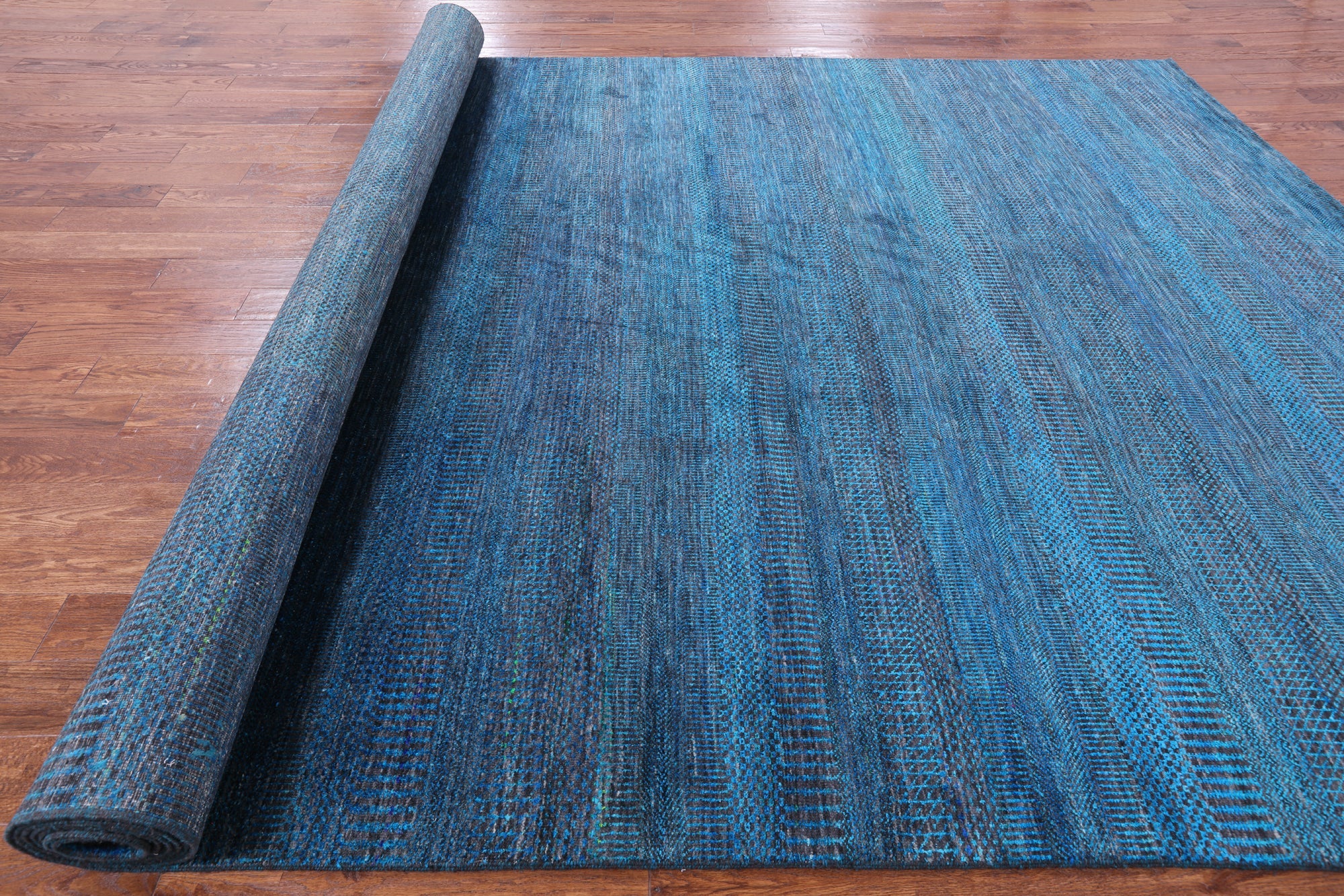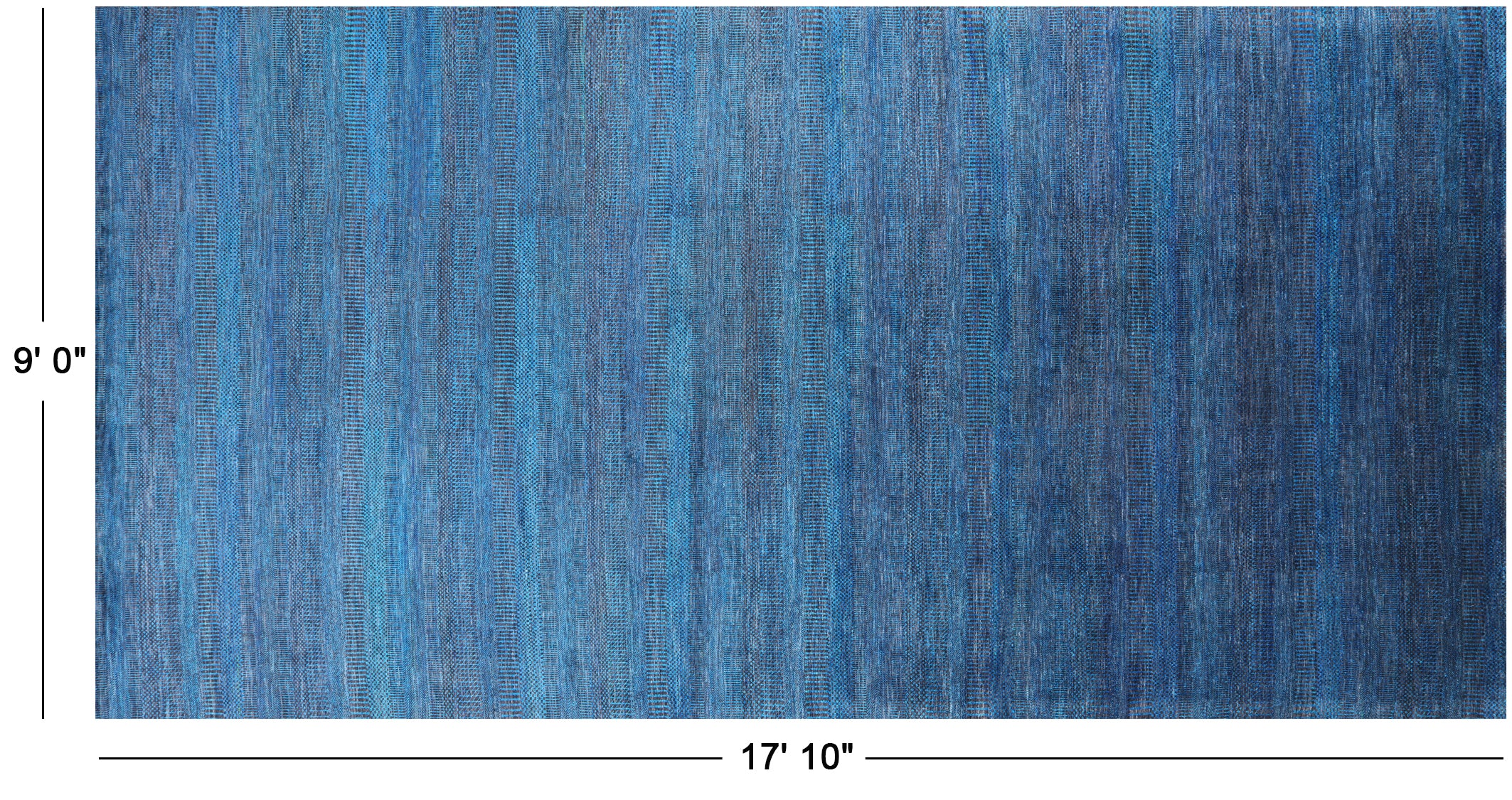 Blue Wool & Silk Super Savannah Gabbeh Hand Knotted Rug 9' 0" X 17' 10"- Q6081