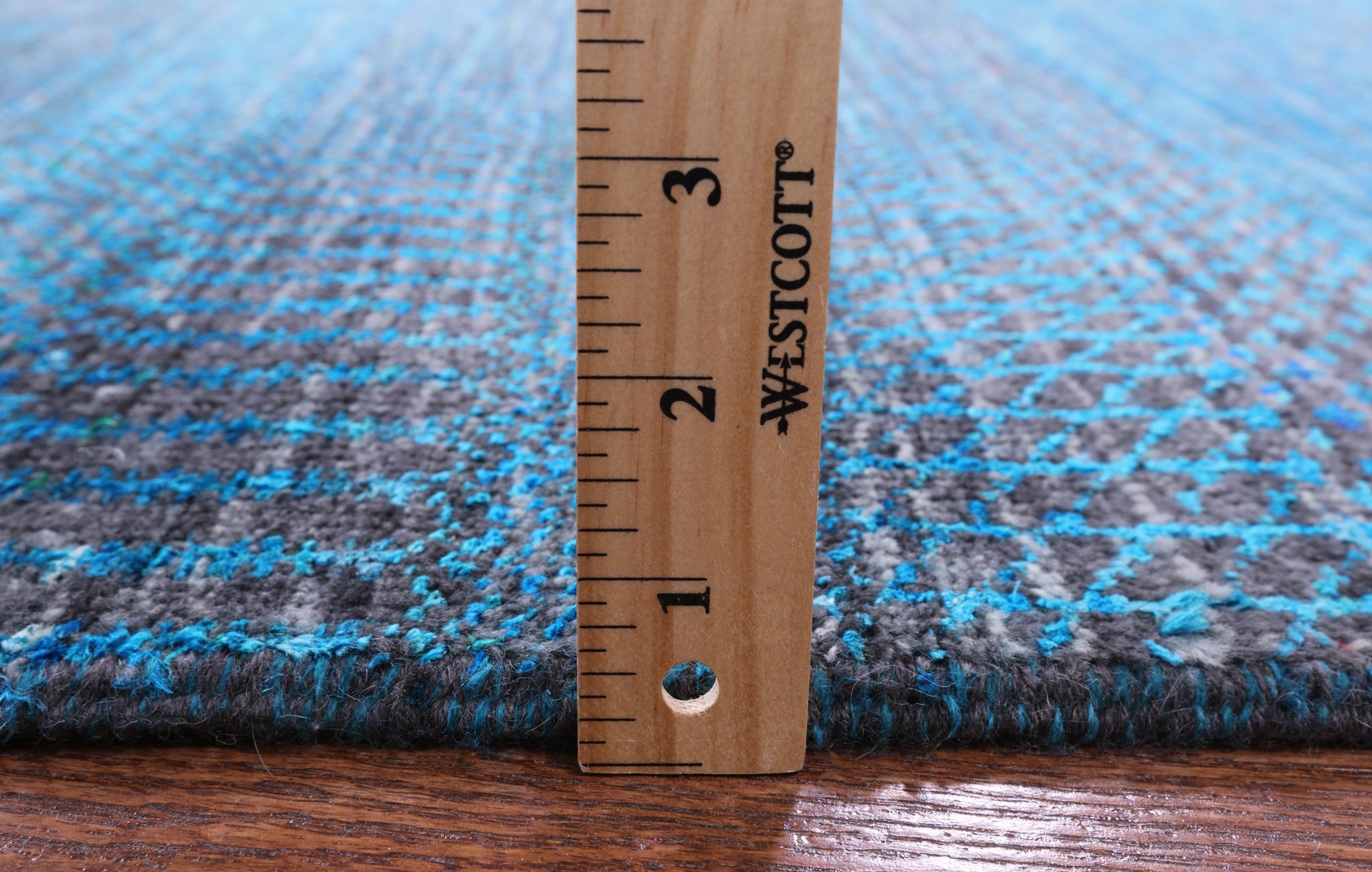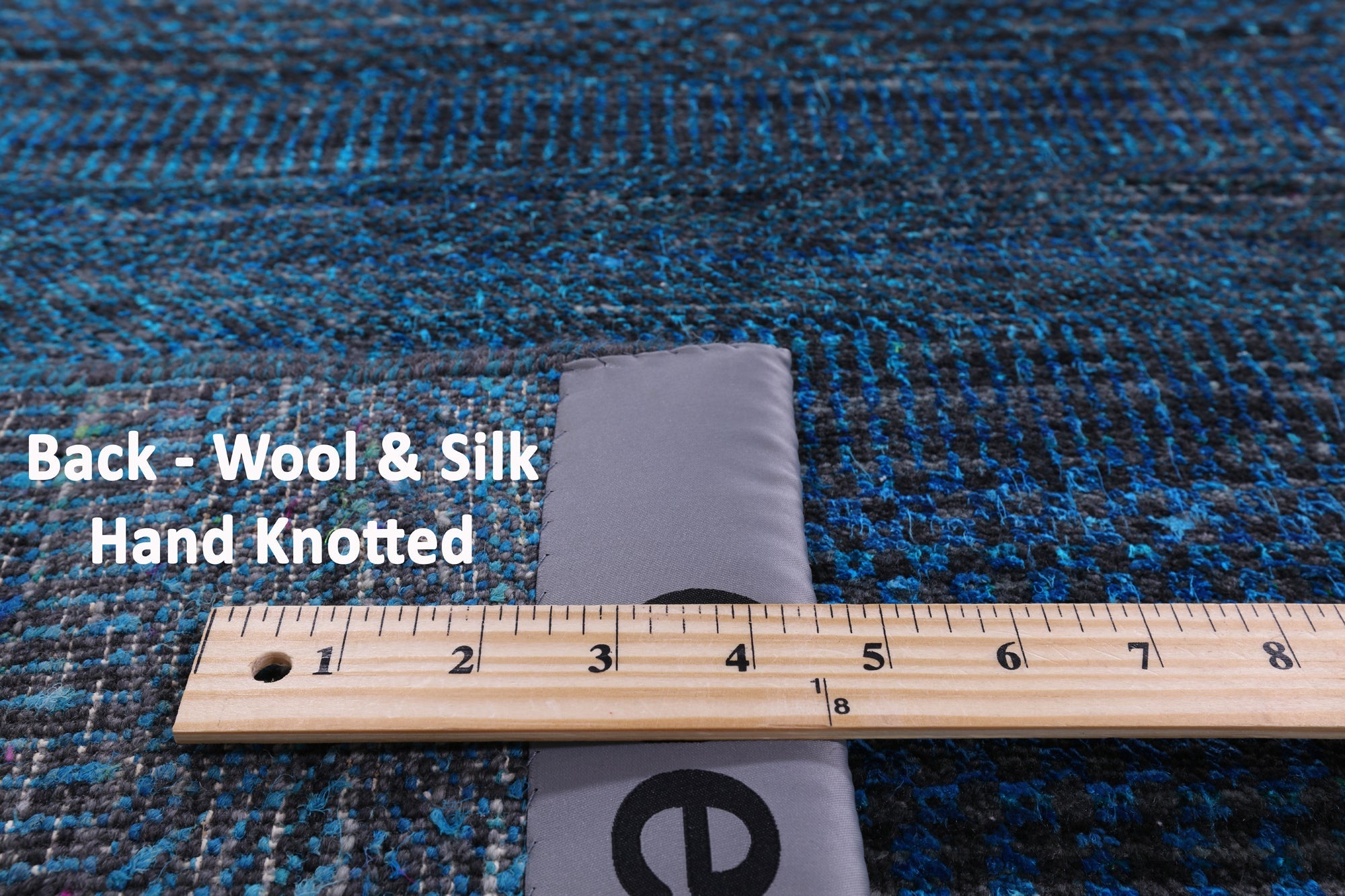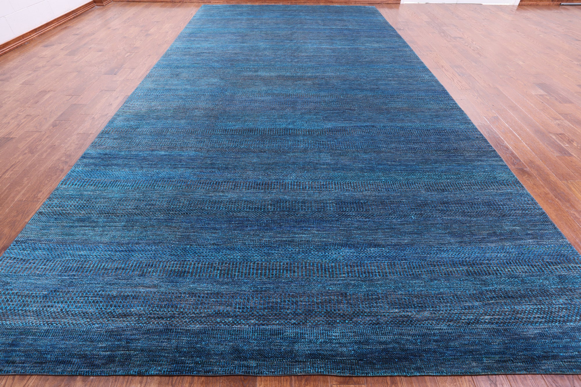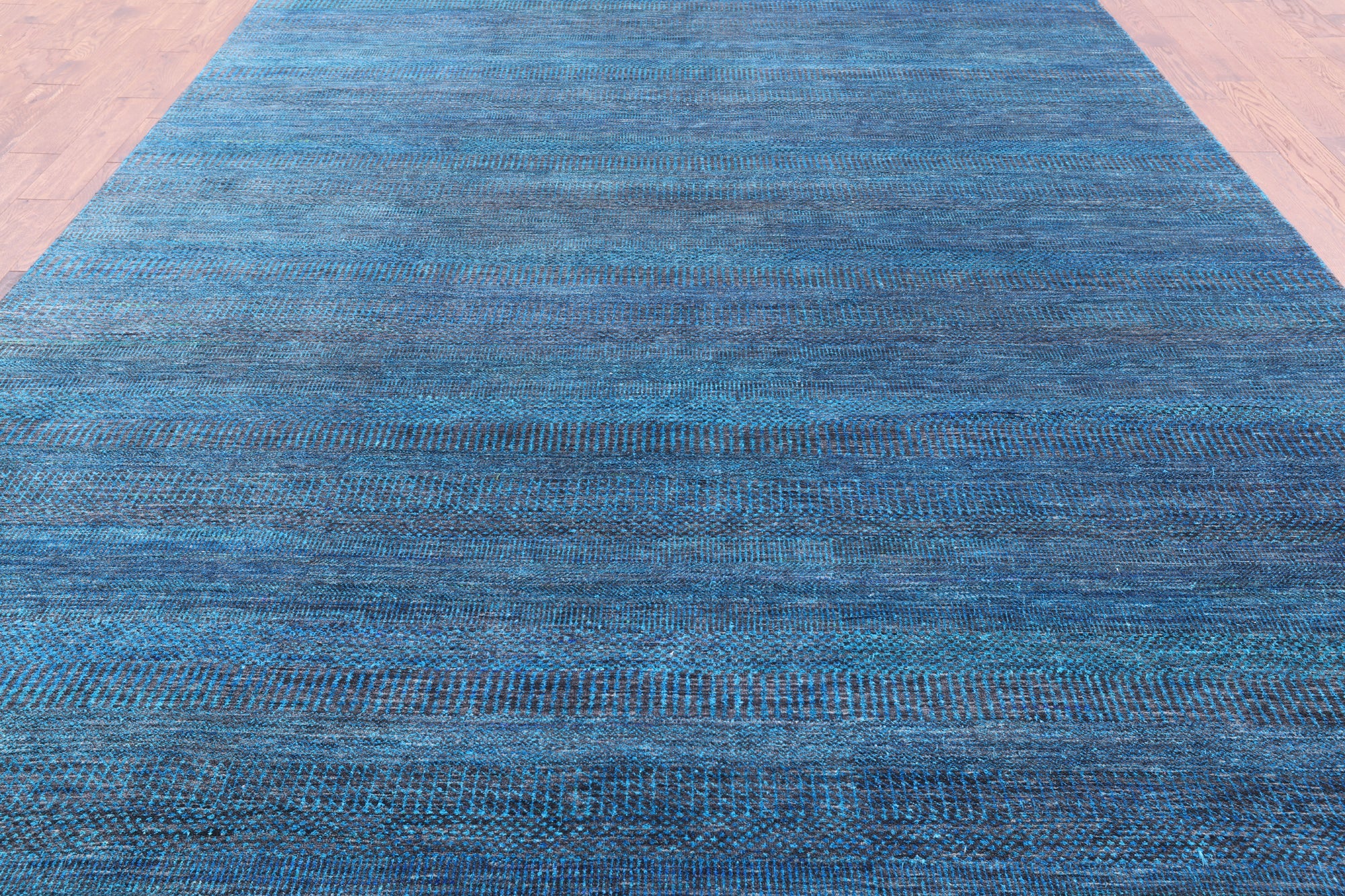 Blue Wool & Silk Super Savannah Gabbeh Hand Knotted Rug 9' 0" X 17' 10"- Q6081