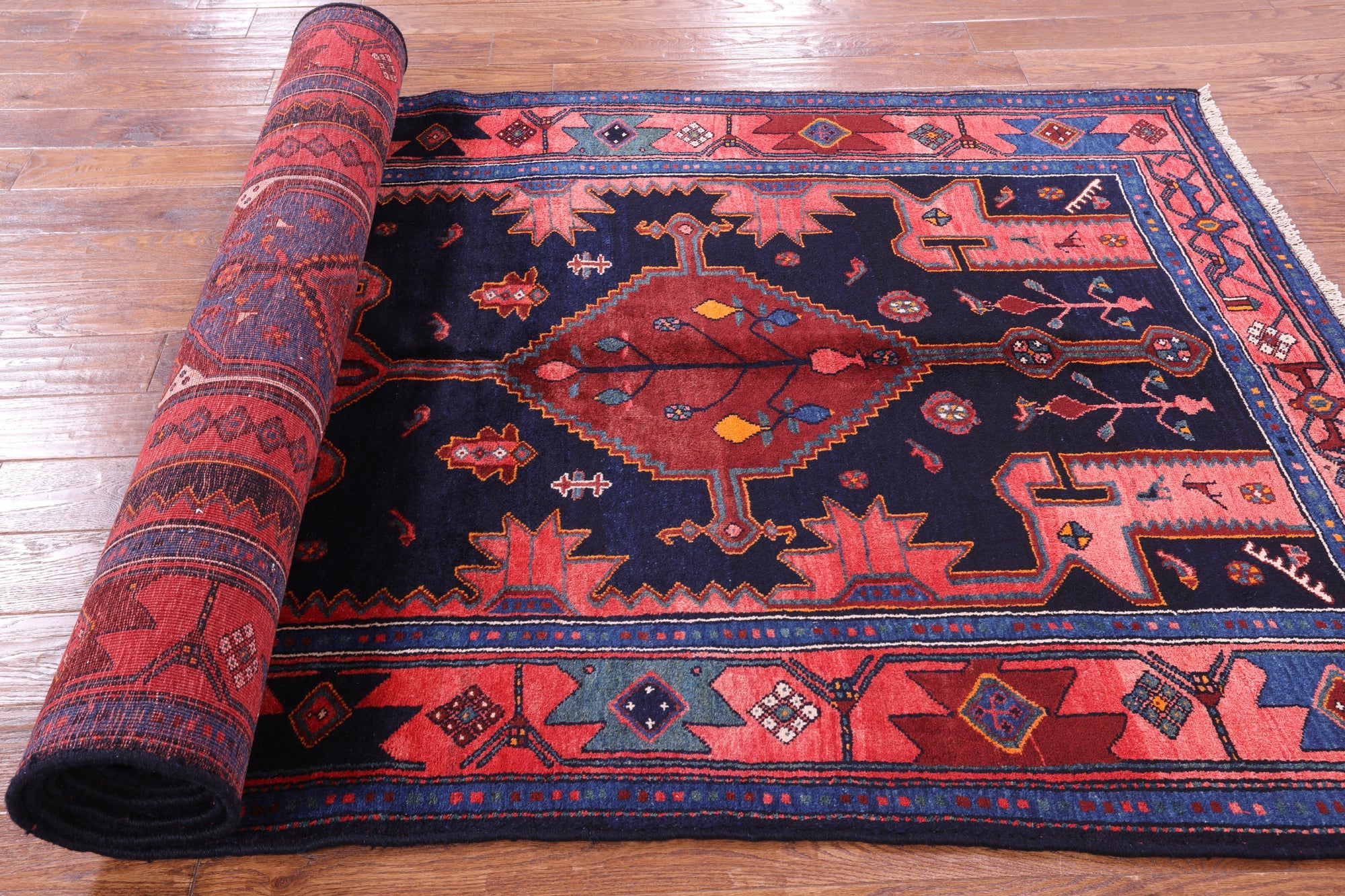 Nahavand rugs comes from the city of Nahavand in Persia. These rugs have a tribal style look, often using floral medallions and a variety of vegetable dyed colors such as reds, blues, greens and different shades of ivory. Nahavand rugs are made with very high quality wool, which gives it a shine. They are very durable rugs that will last a lifetime.