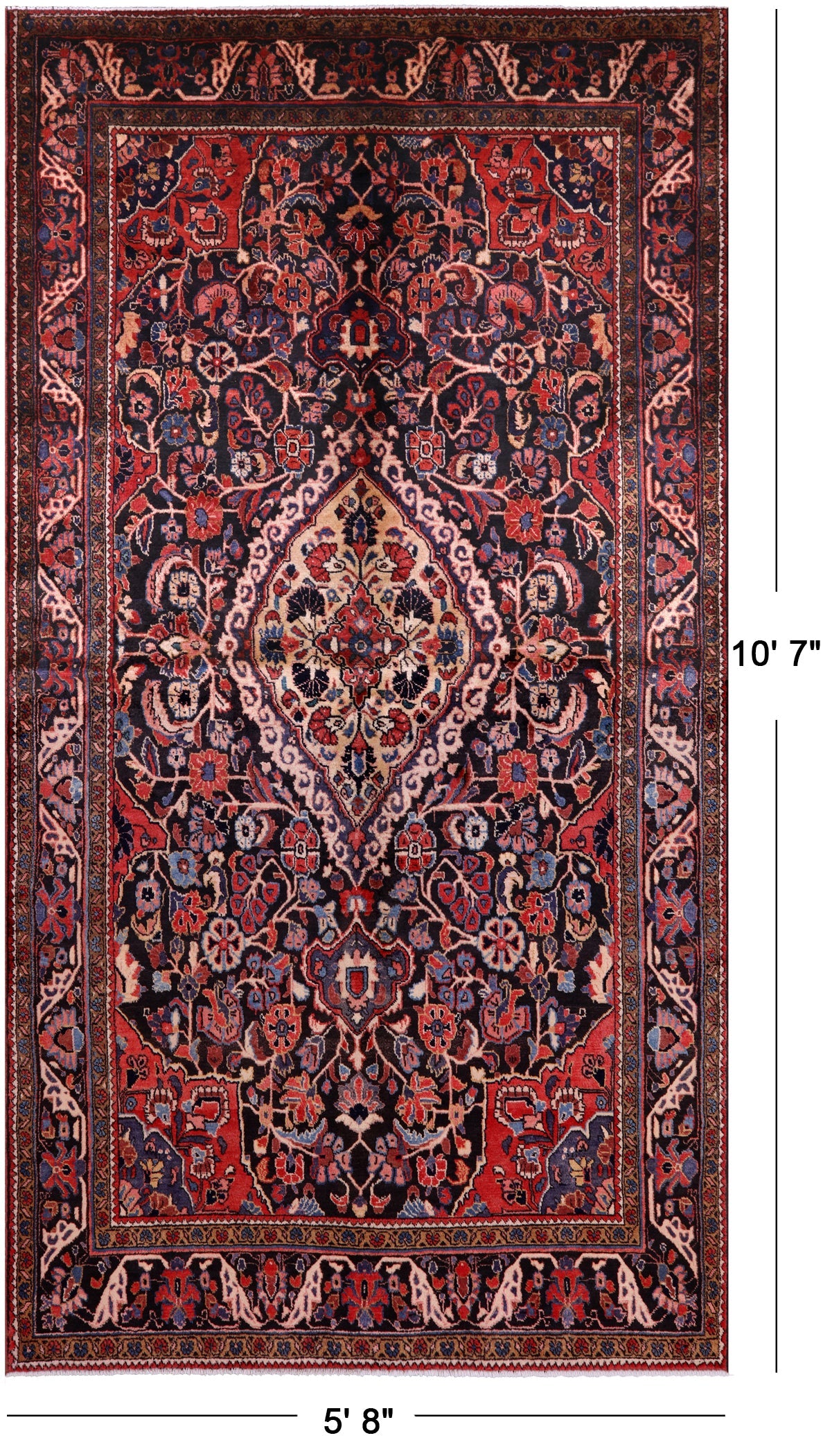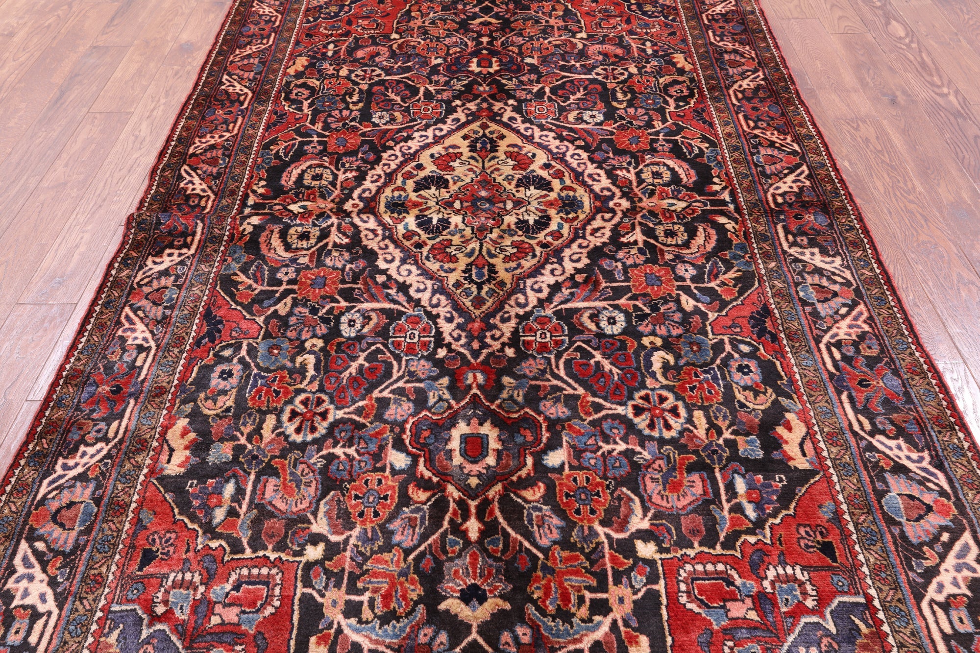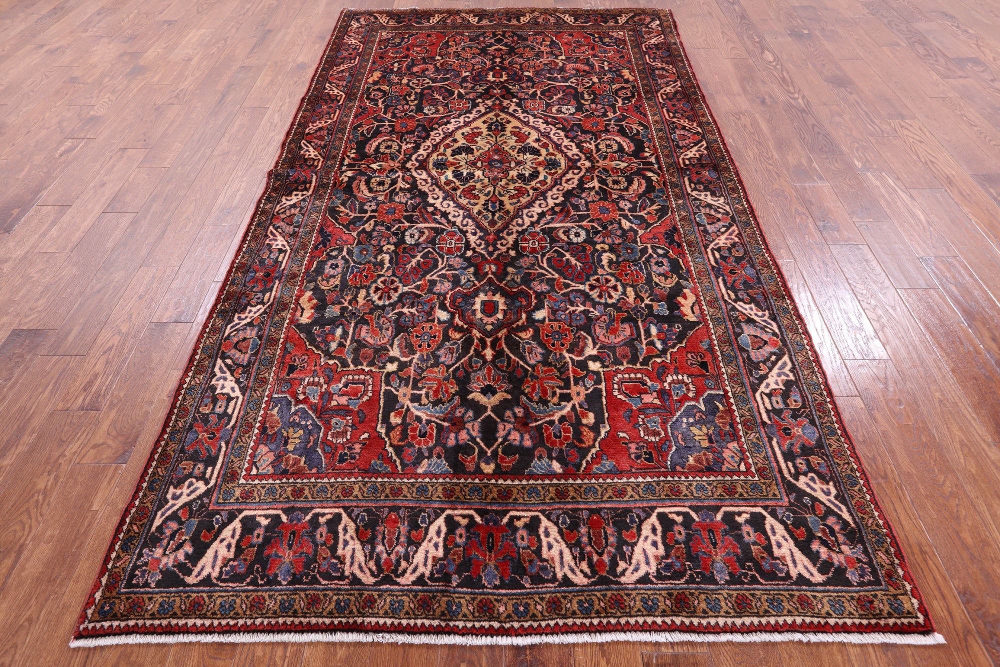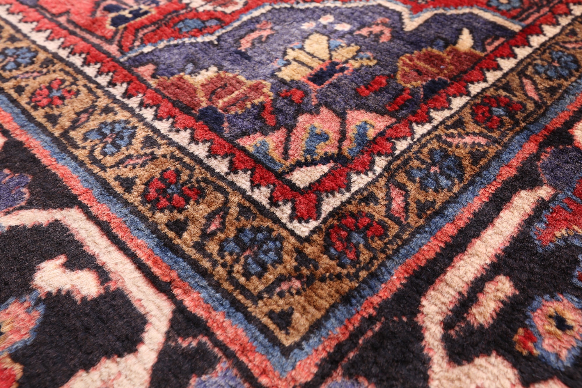 Nahavand rugs comes from the city of Nahavand in Persia. These rugs have a tribal style look, often using floral medallions and a variety of vegetable dyed colors such as reds, blues, greens and different shades of ivory. Nahavand rugs are made with very high quality wool, which gives it a shine. They are very durable rugs that will last a lifetime.