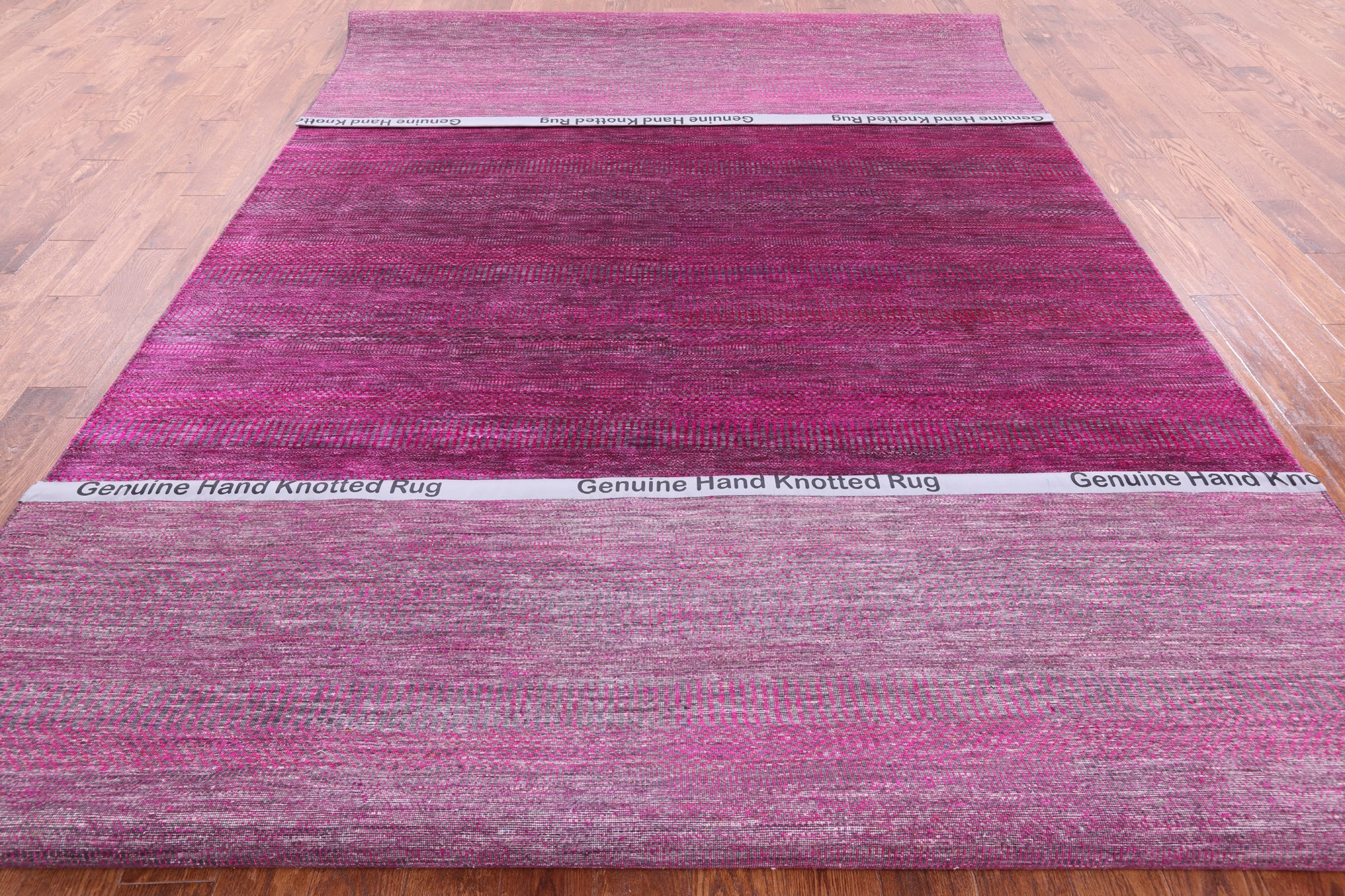 Pink Super Savannah Gabbeh Hand Knotted Wool & Silk Rug 8' 0" X 15' 8"- Q6131