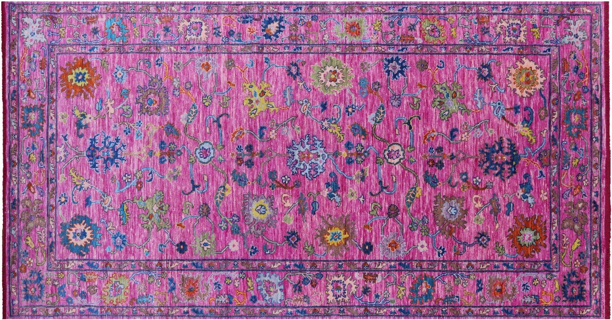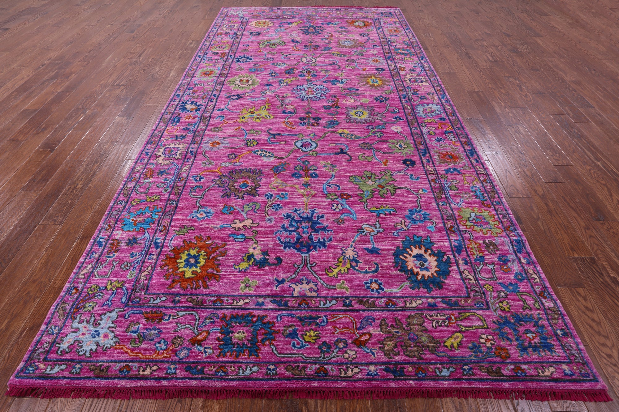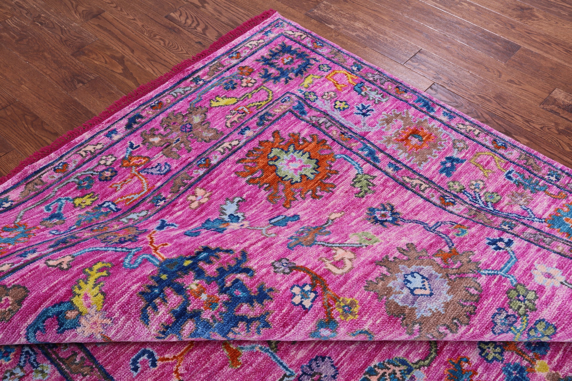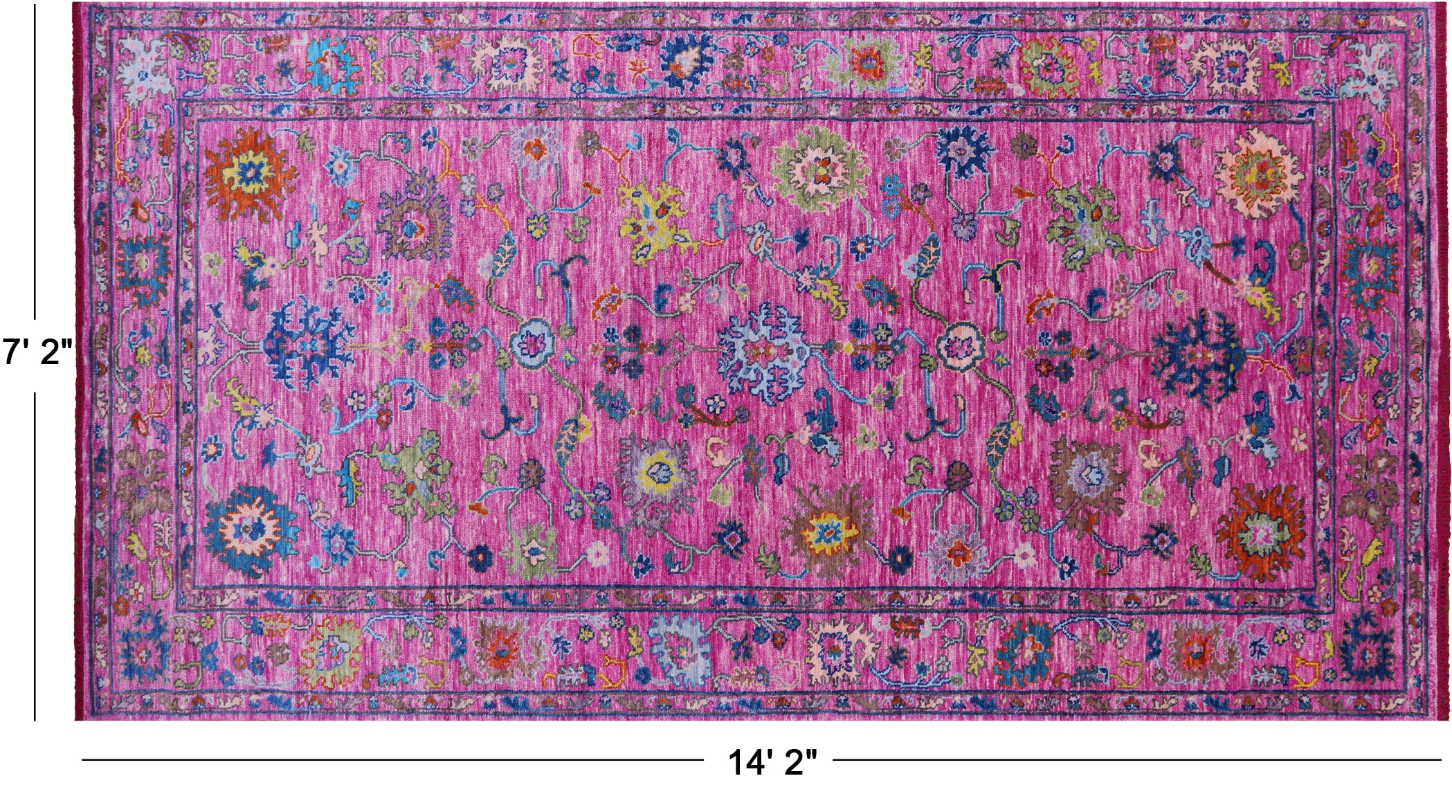 Pink 7' 2" X 14' 2" Turkish Angora Oushak Hand-Knotted Wool Rug - Q13636