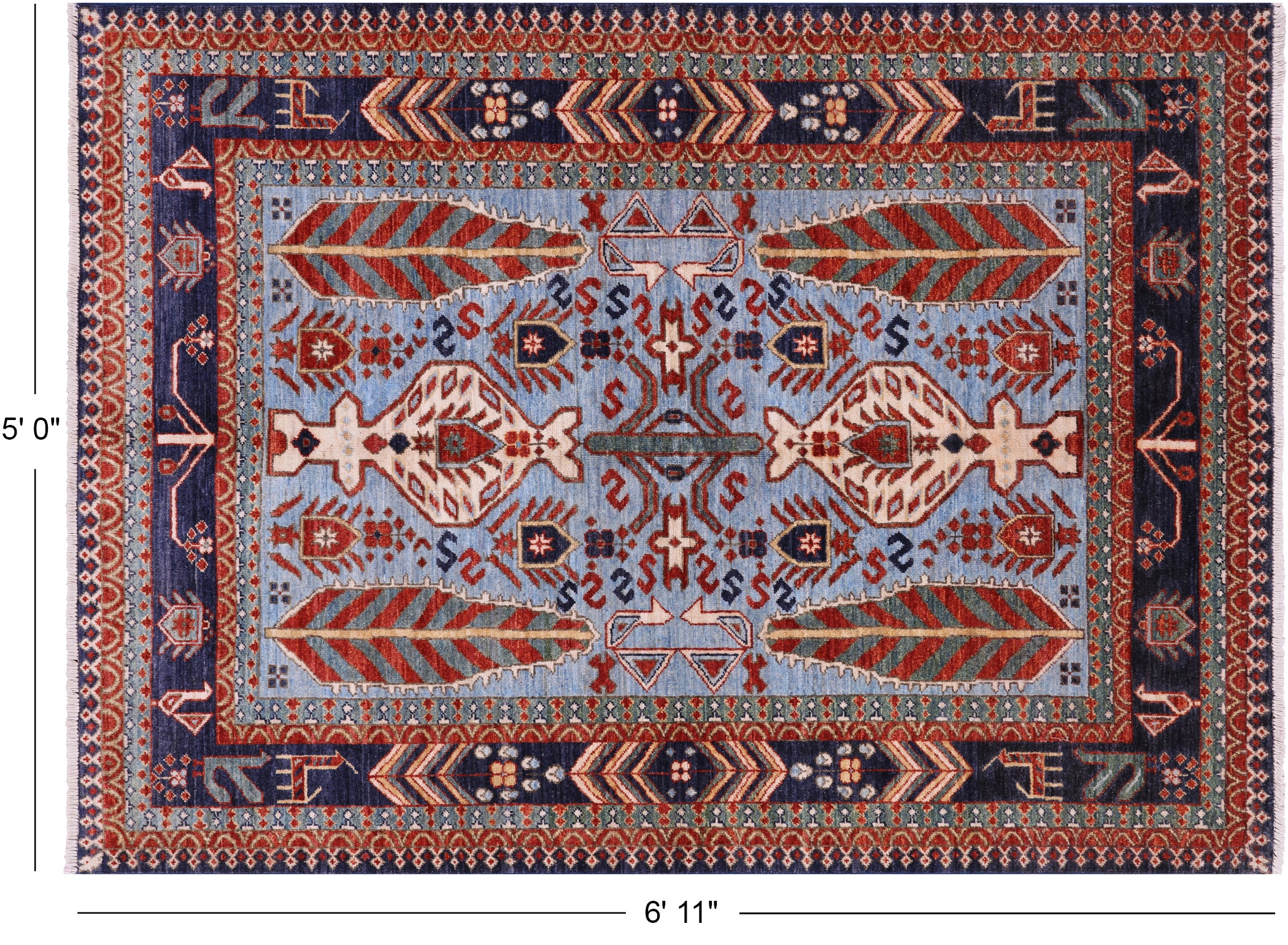 Blue 5' 0" X 6' 11" Fine Serapi Hand Knotted Area Rug - P4487