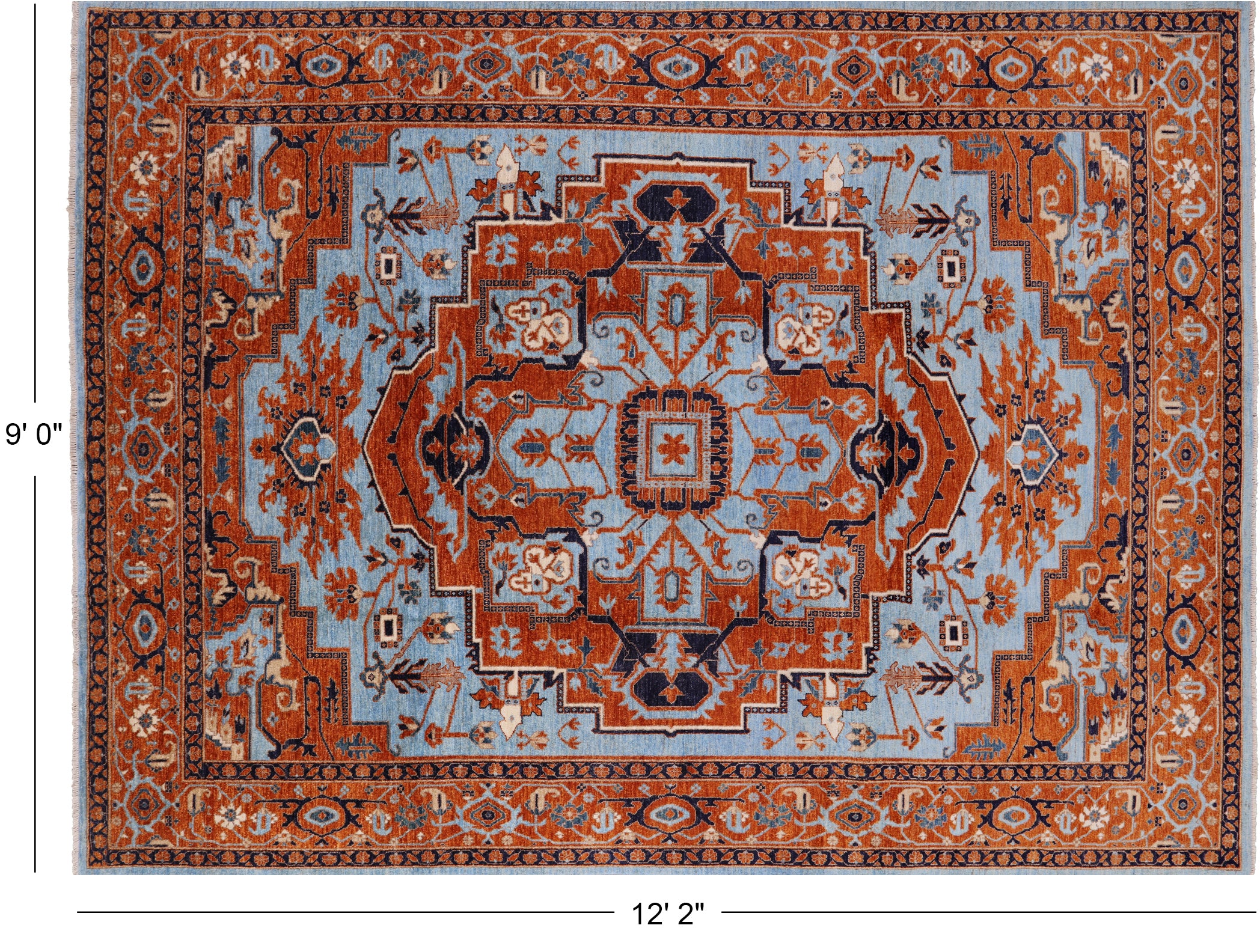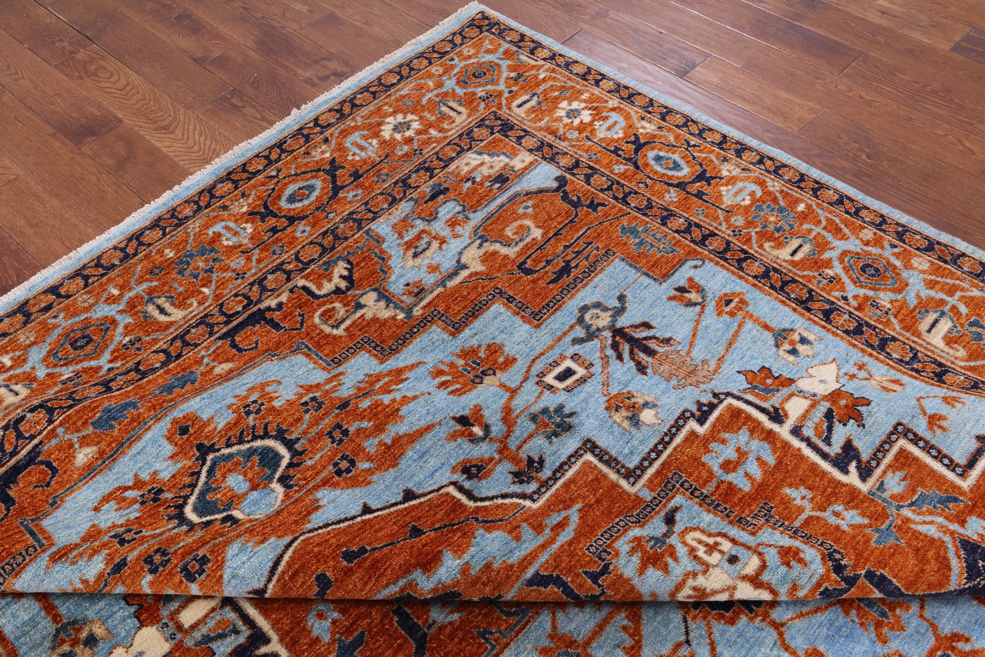 Blue Persian Fine Serapi Hand Knotted Wool Rug 9' 0" X 12' 0" - P4541 is backordered and will ship as soon as it is back in stock.
