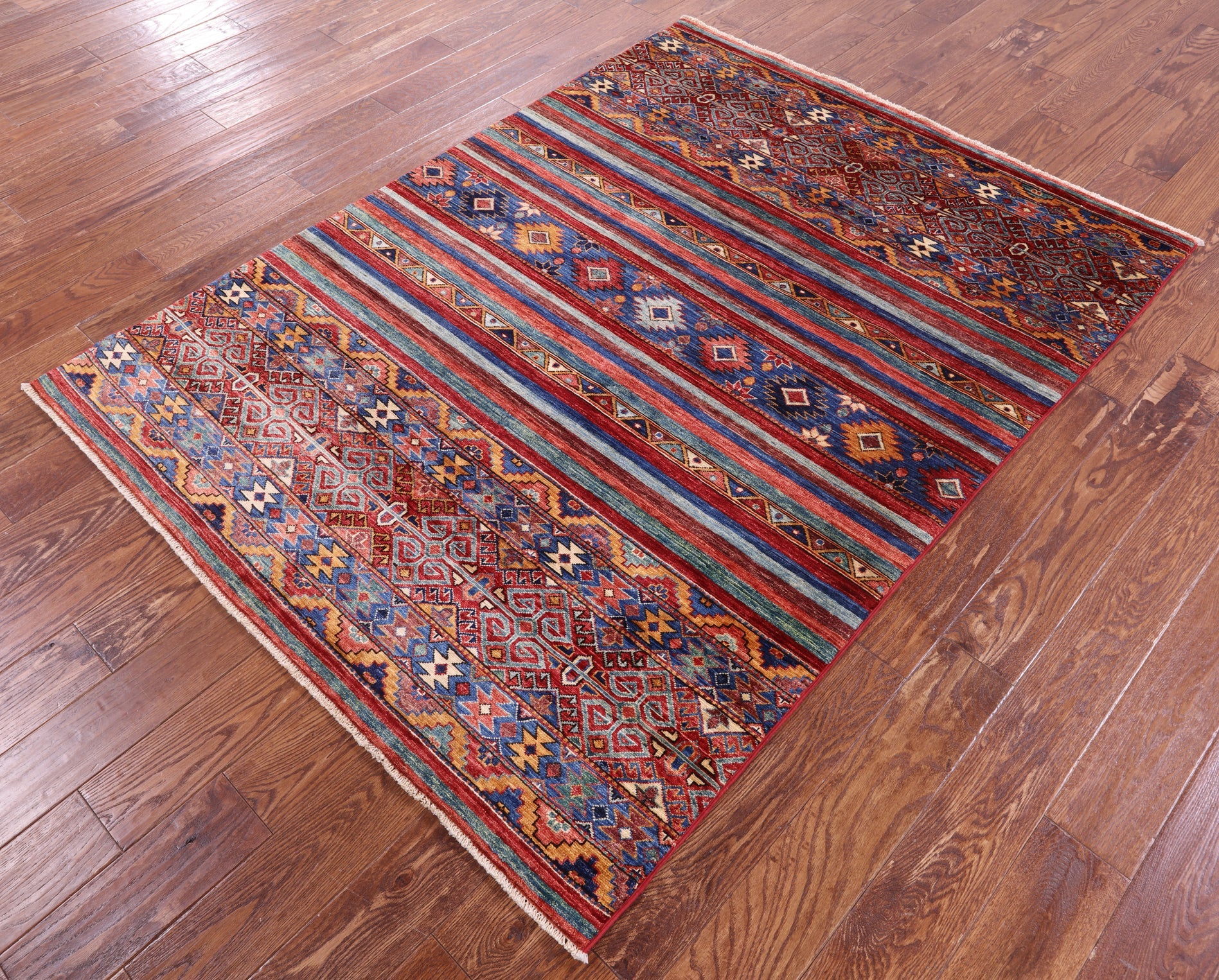 4' 9" X 6' 5" Handmade Super Kazak Khorjin Wool Rug - Q16417 is backordered and will ship as soon as it is back in stock.