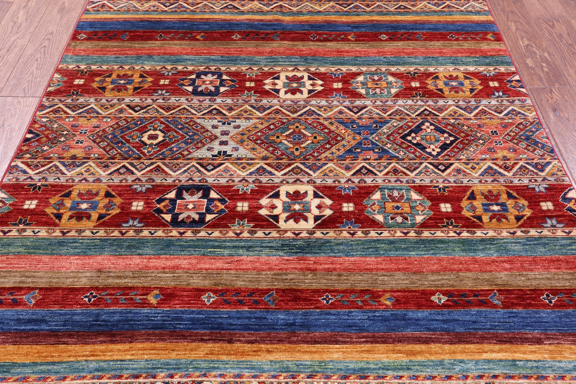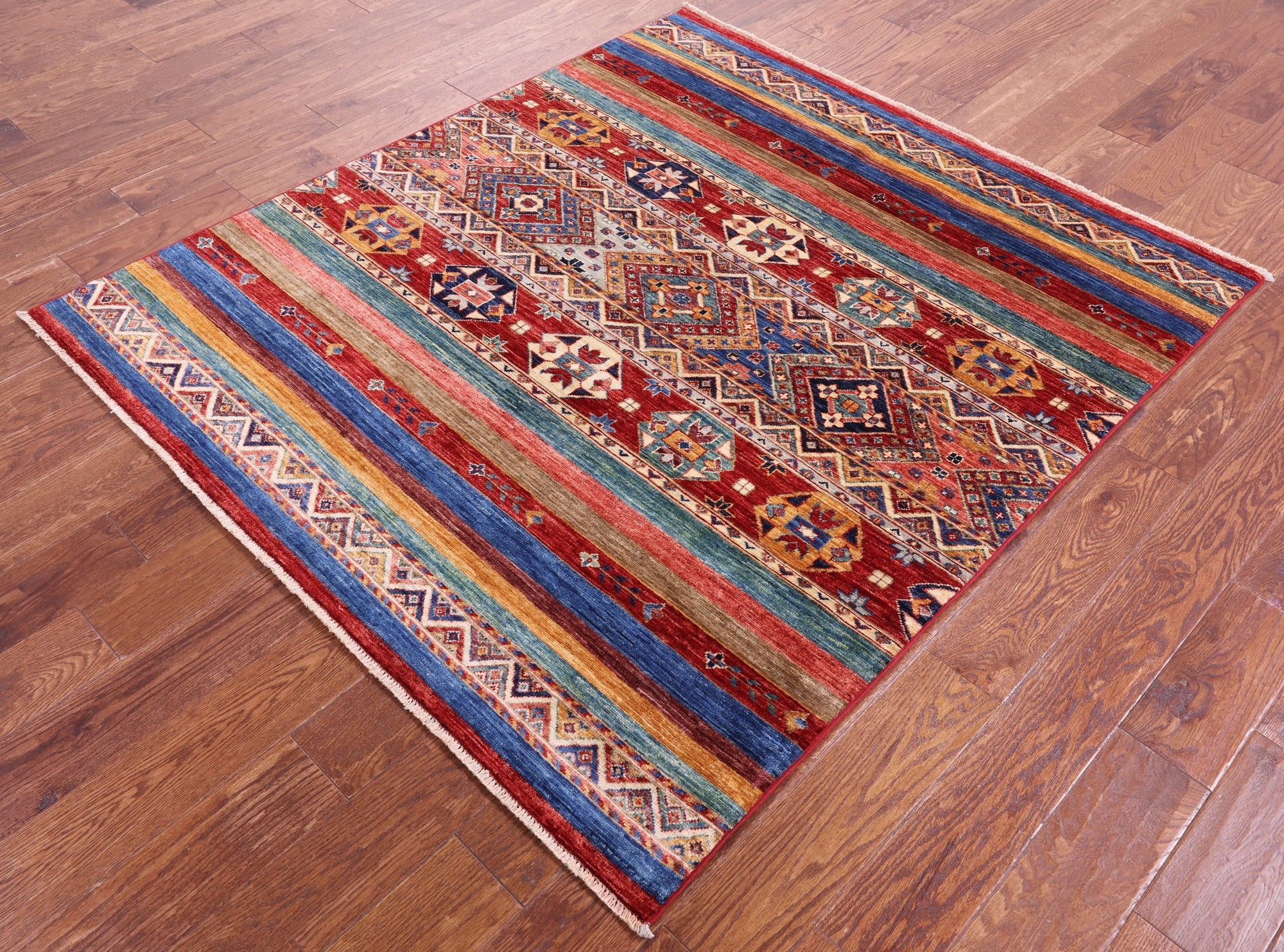 Handmade Super Kazak Khorjin Wool Rug 4' 11" X 5' 6" - Q17295 is backordered and will ship as soon as it is back in stock.