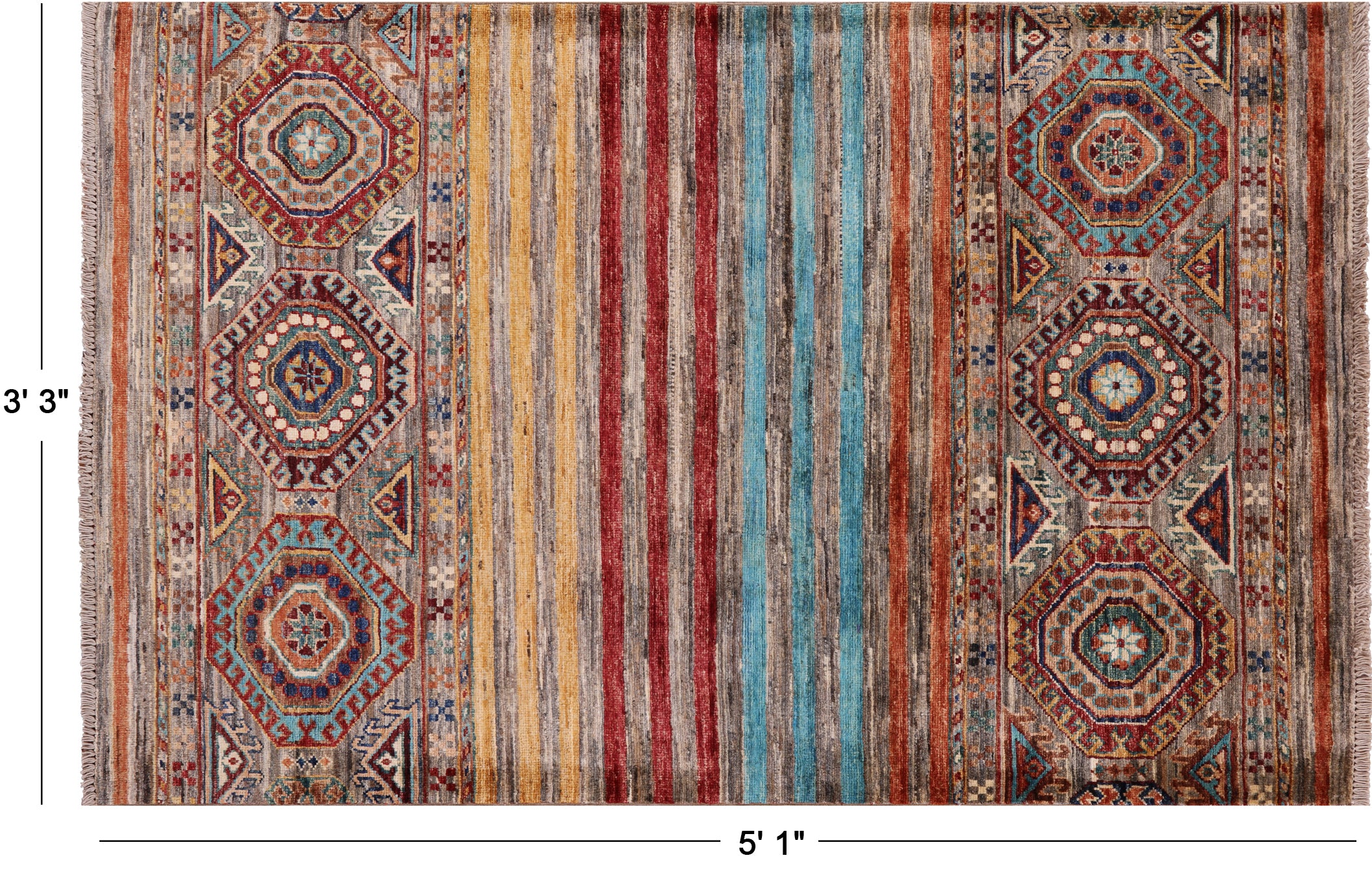 Super Kazak Khorjin Handmade Wool Rug 3' 3" X 5' 1" - Q12326