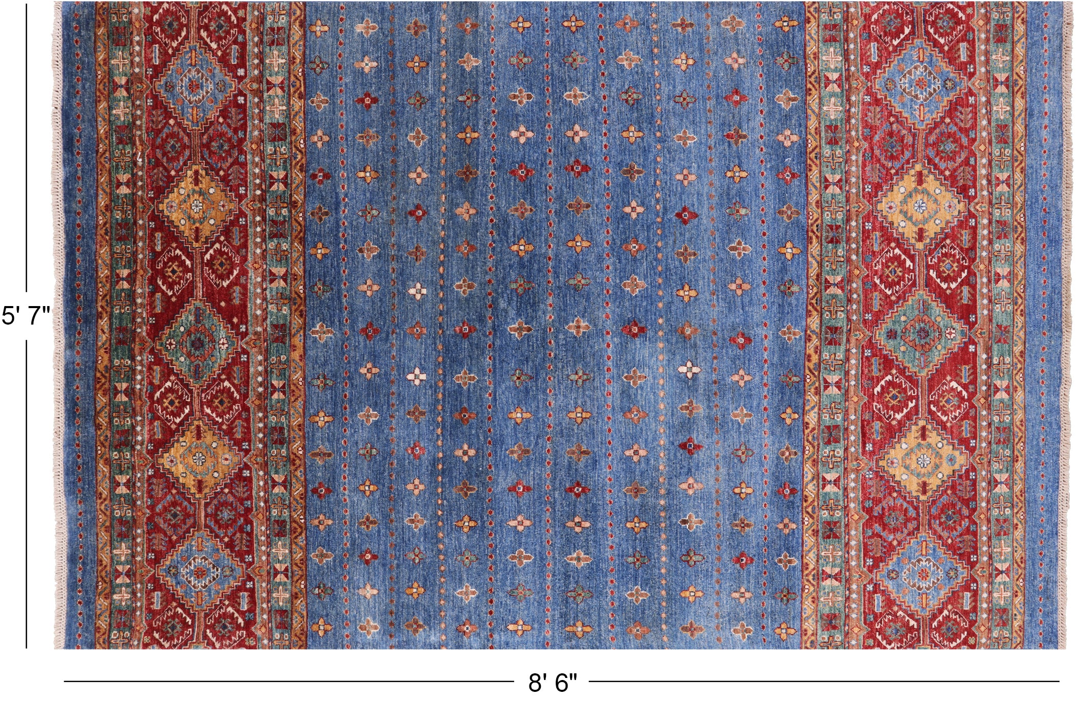 5' 7" X 8' 6" Super Kazak Khorjin Handmade Wool Rug - Q7642