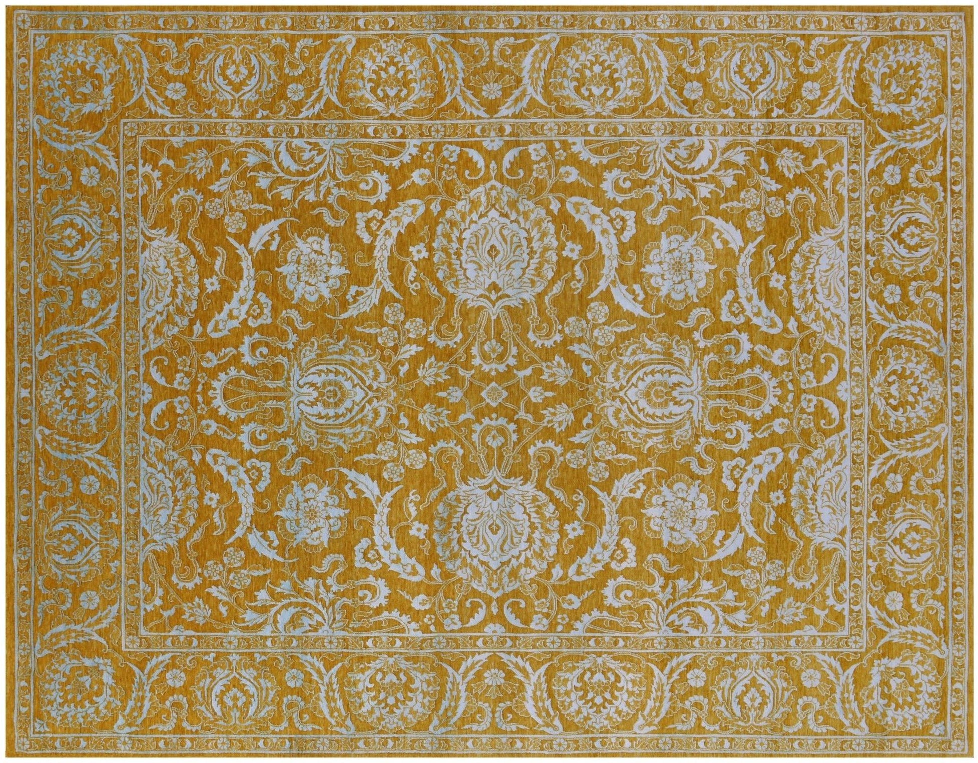 Gold 8' 0" X 10' 2" Persian Tabriz Wool & Silk Handmade Rug - Q22426