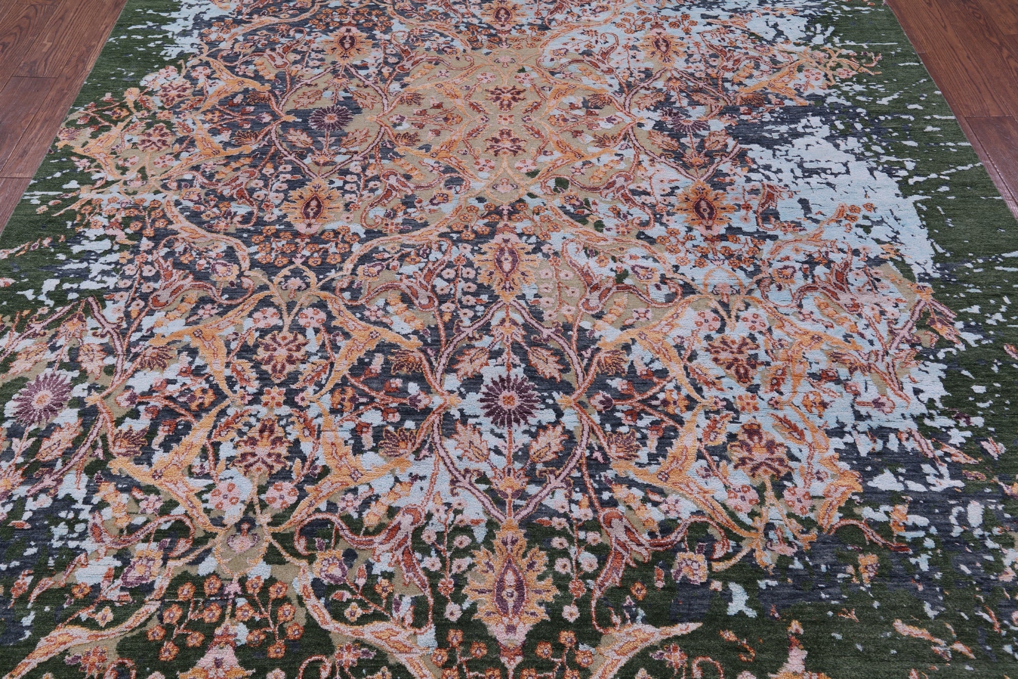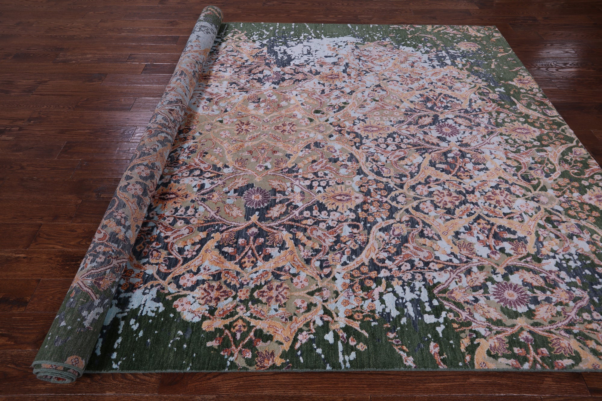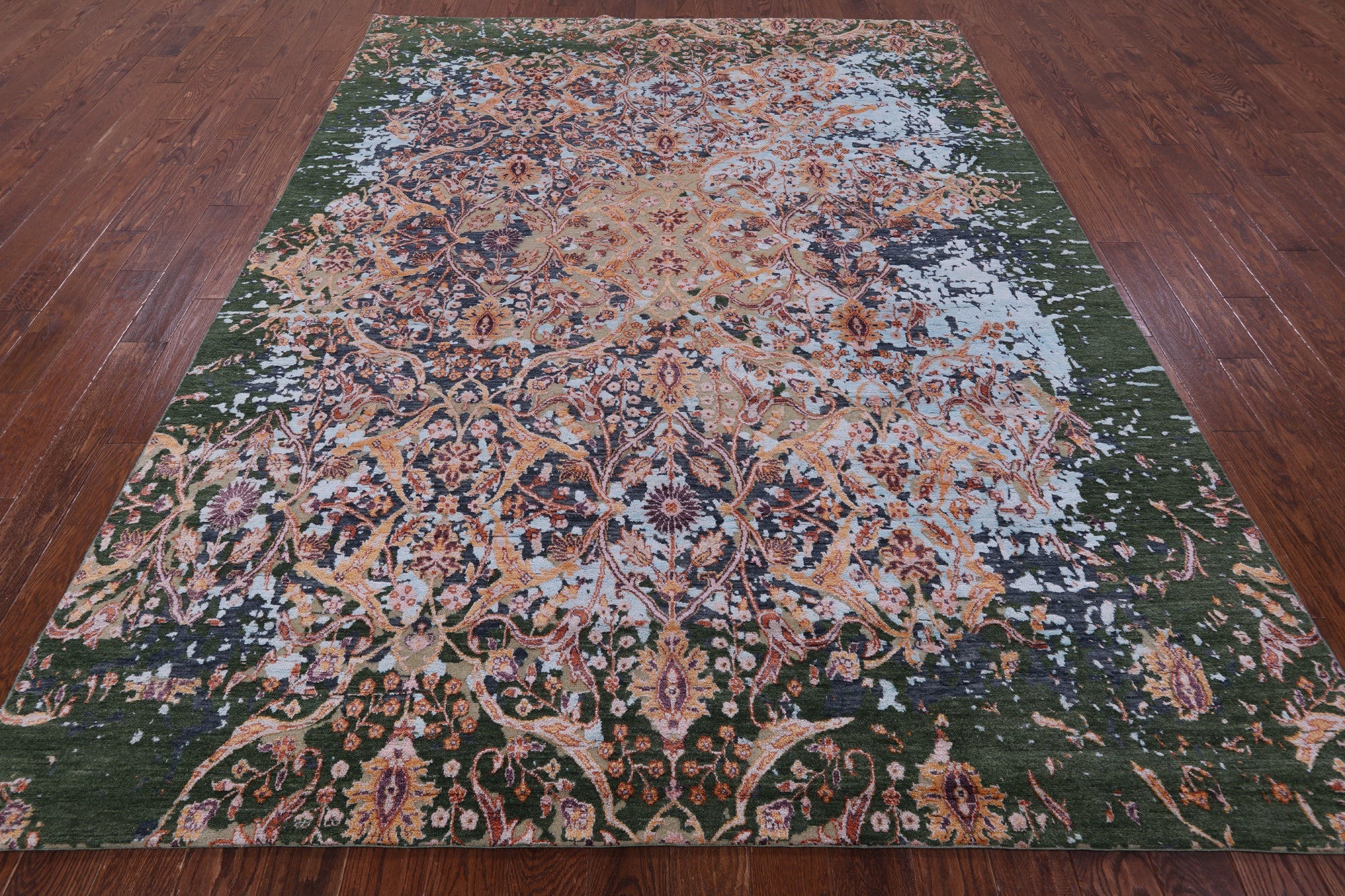 Green 8' 0" X 10' 6" Modern Hand-Knotted Wool & Silk Rug - Q11810 is backordered and will ship as soon as it is back in stock.
