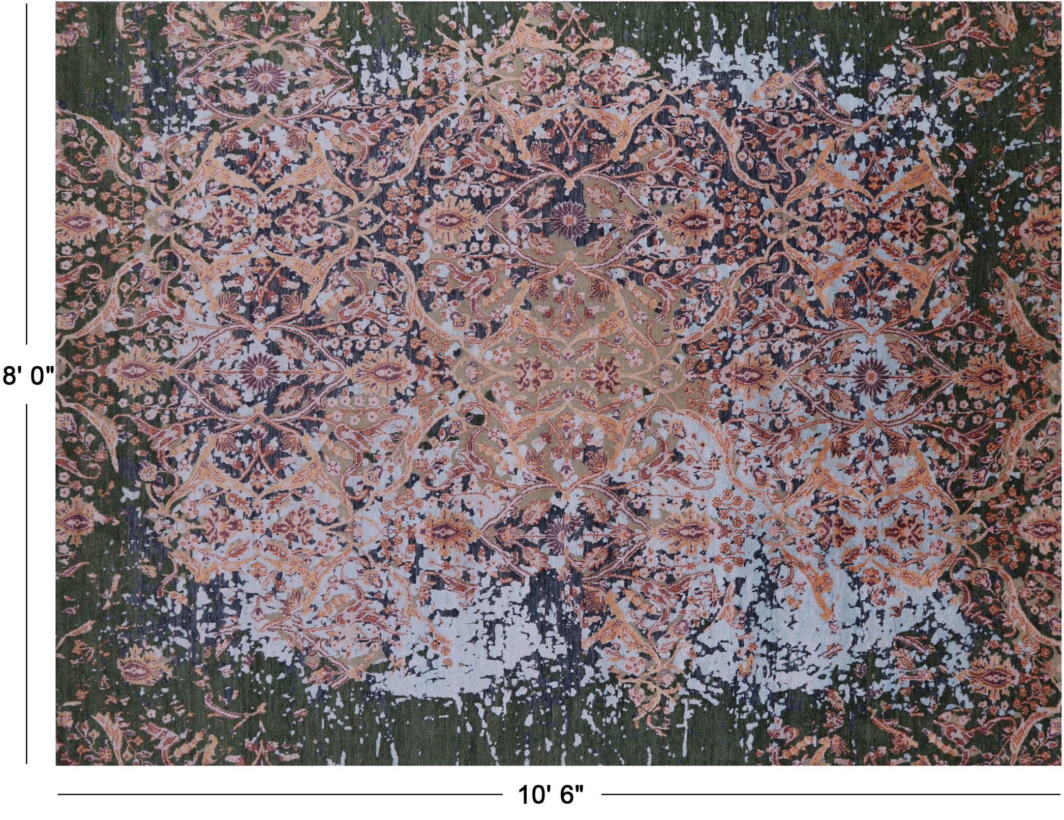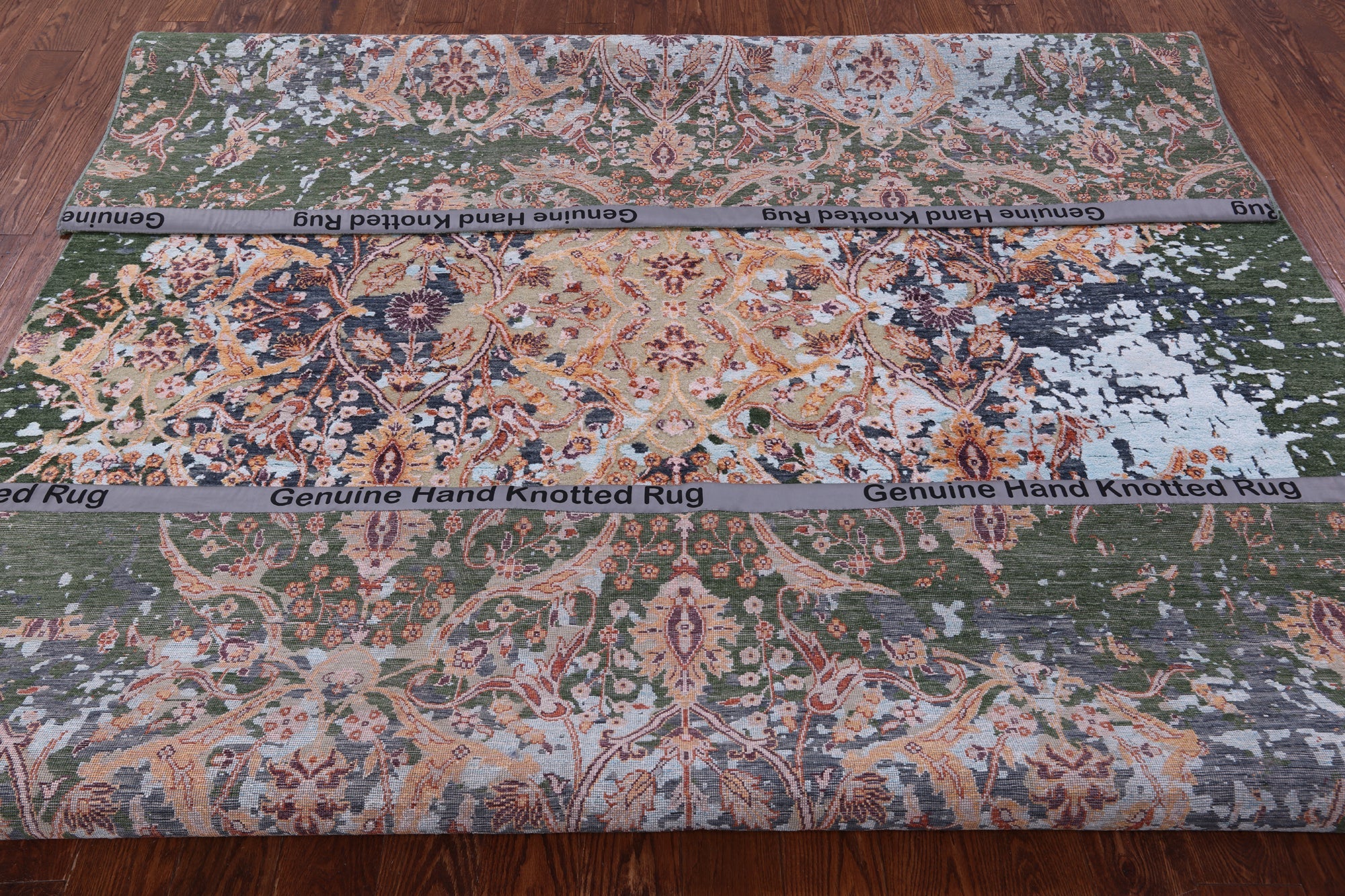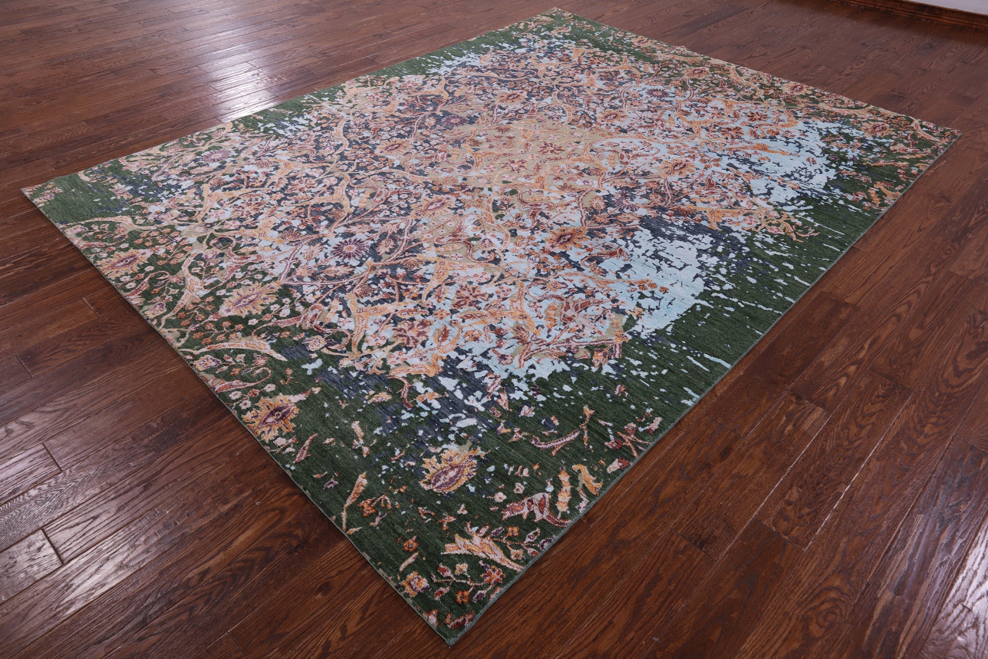Green 8' 0" X 10' 6" Modern Hand-Knotted Wool & Silk Rug - Q11810 is backordered and will ship as soon as it is back in stock.