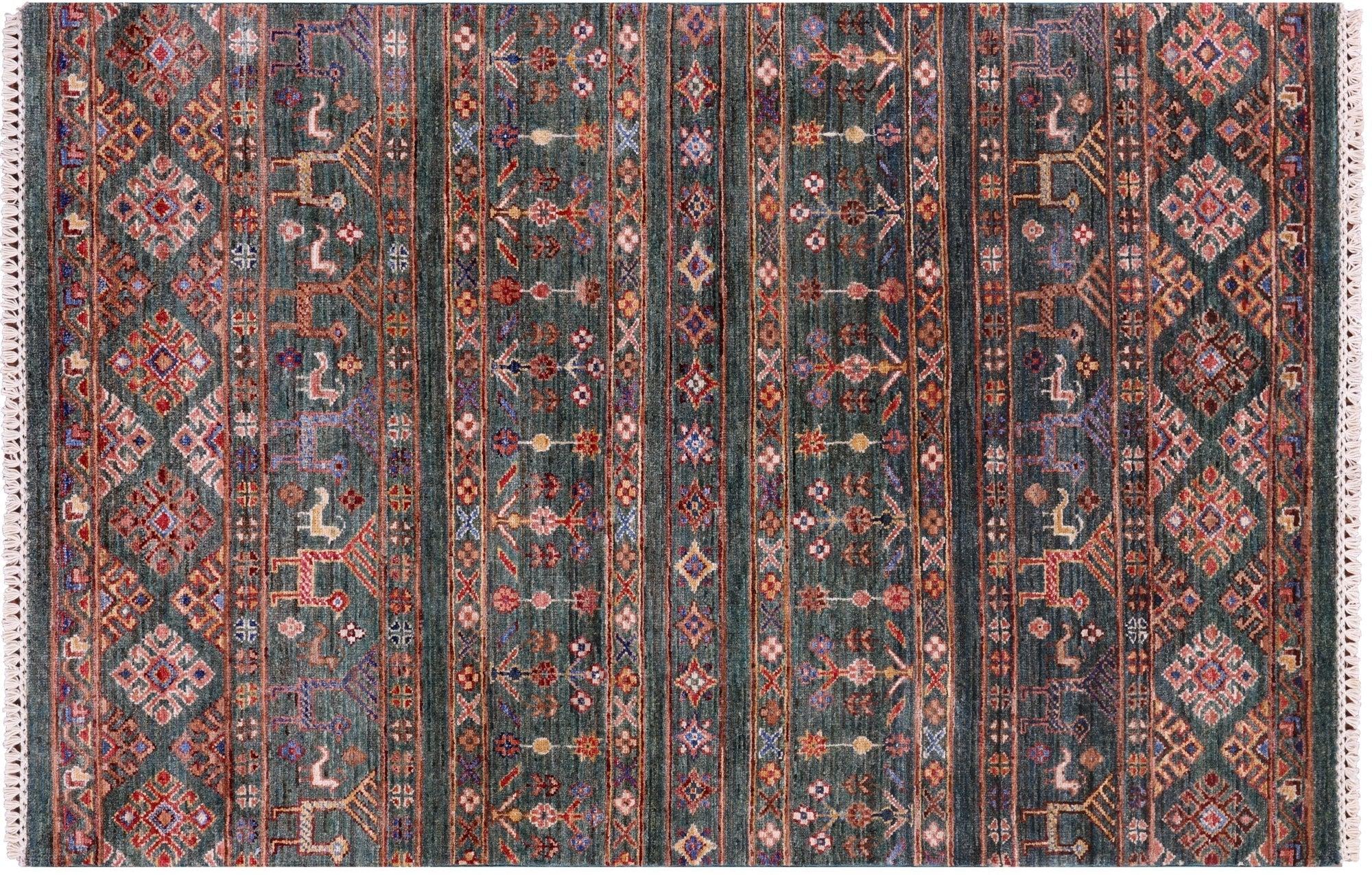 Green 3' 4" X 5' 0" Persian Gabbeh Tribal Hand Knotted Wool Rug - Q14379